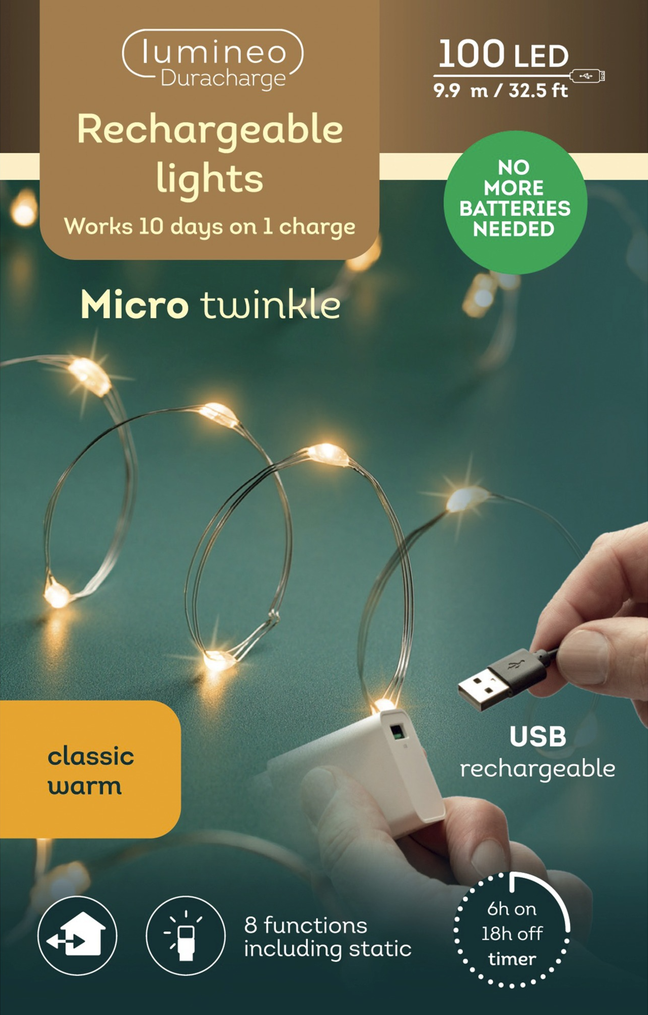 Ghirlandă de luminițe - Micro LED Duracharge 8 Function Twinkle Effect - Classic Warm