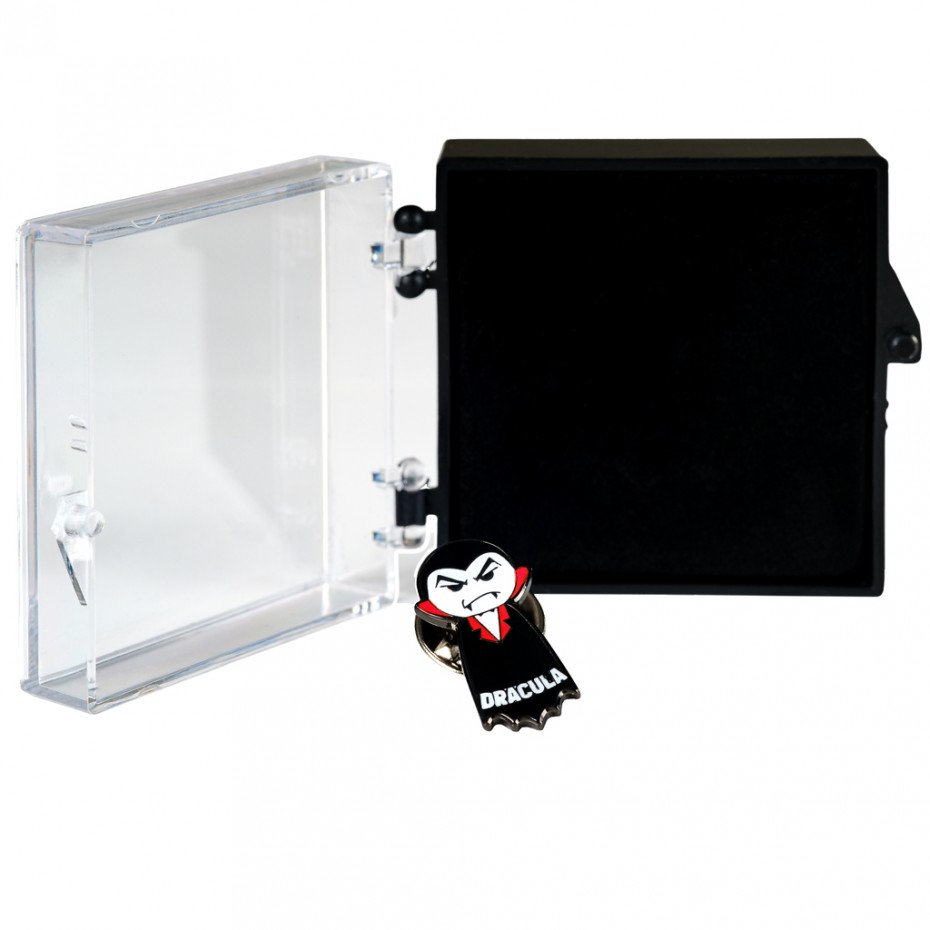 Insigna este realizată din metal, fața este vopsită în culori emailate, acoperite cu lac. Grafica îl prezintă pe bine-cunoscutul Dracula.