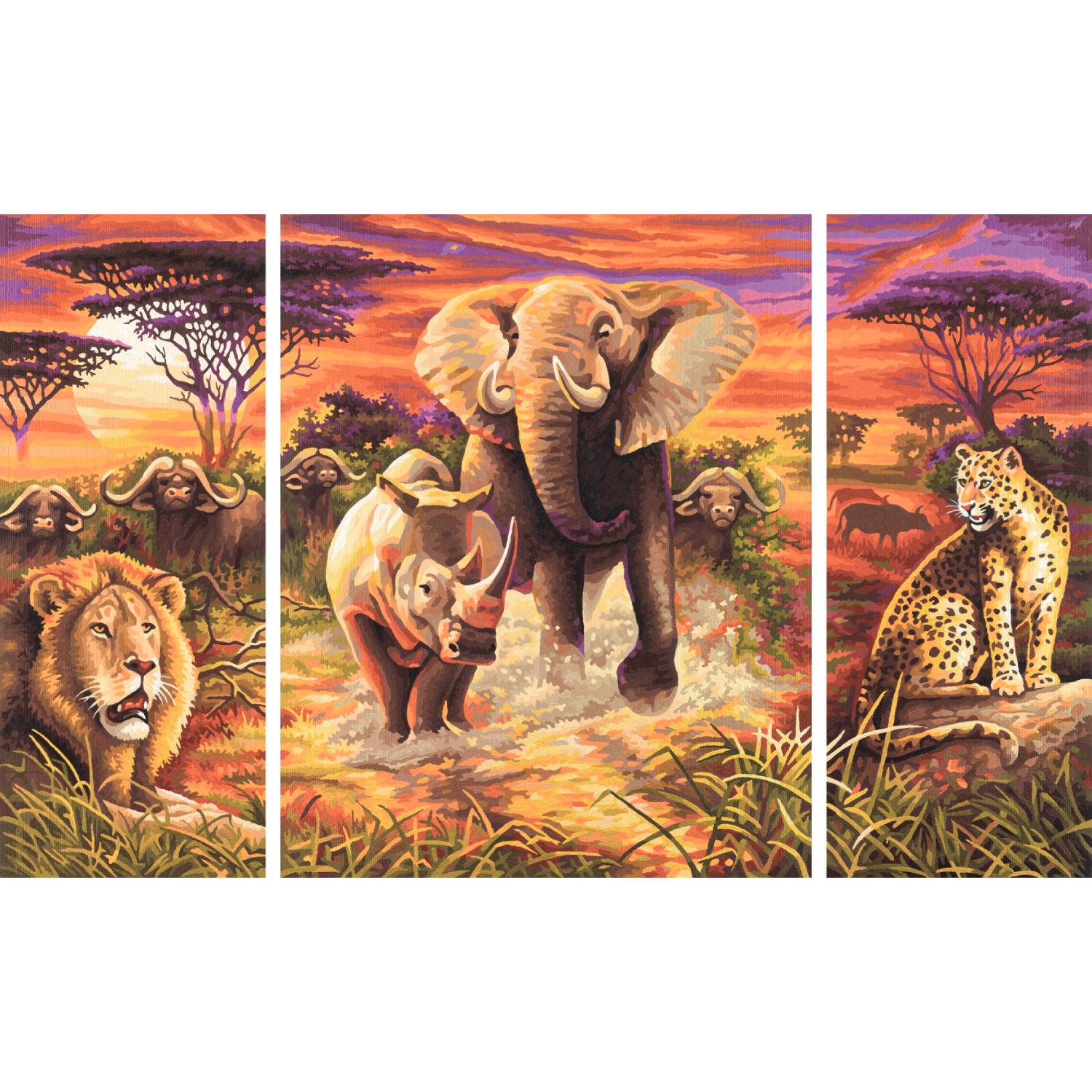 Set pictură pe numere, 50x80 cm, format din 3 tablouri. Unul central cu dimensiunea de 50x40 cm și două laterale cu dimensiunea de 50x20 cm, din carton cu textură de pânză.
