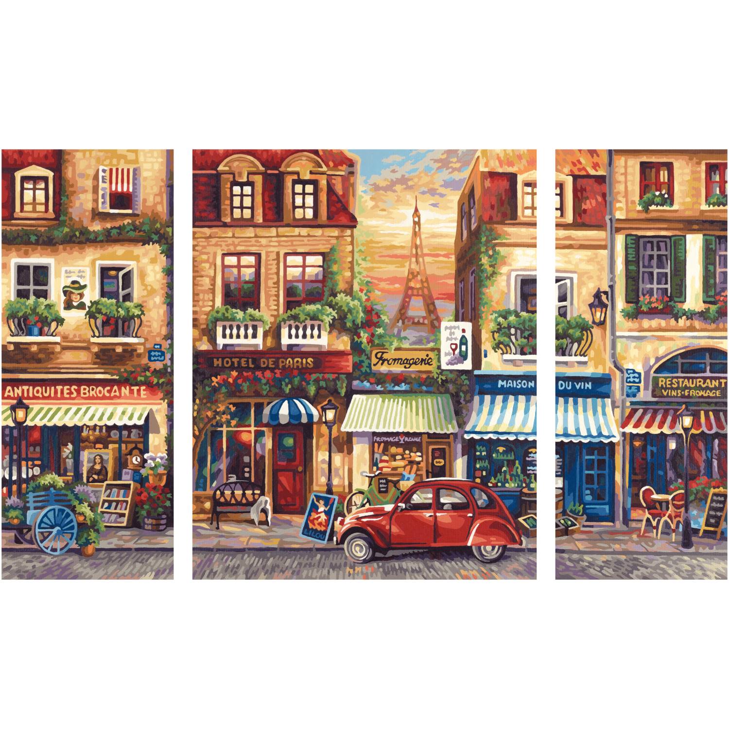Set pictură pe numere, 50x80 cm, format din 3 tablouri. Unul central cu dimensiunea de 50x40 cm și două laterale cu dimensiunea de 50x20 cm, din carton cu textură de pânză.