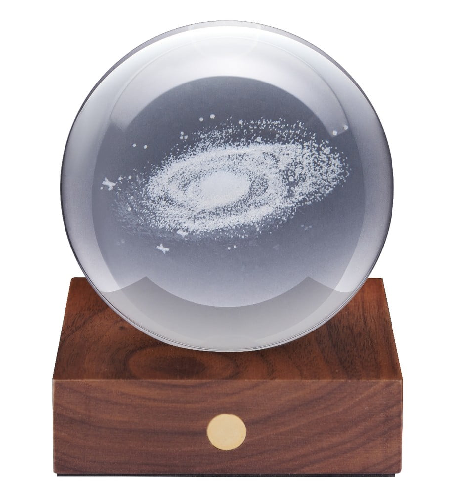 • Bază din lemn de nuc certificat FSC, glob din cristal imprimat cu laser 3D