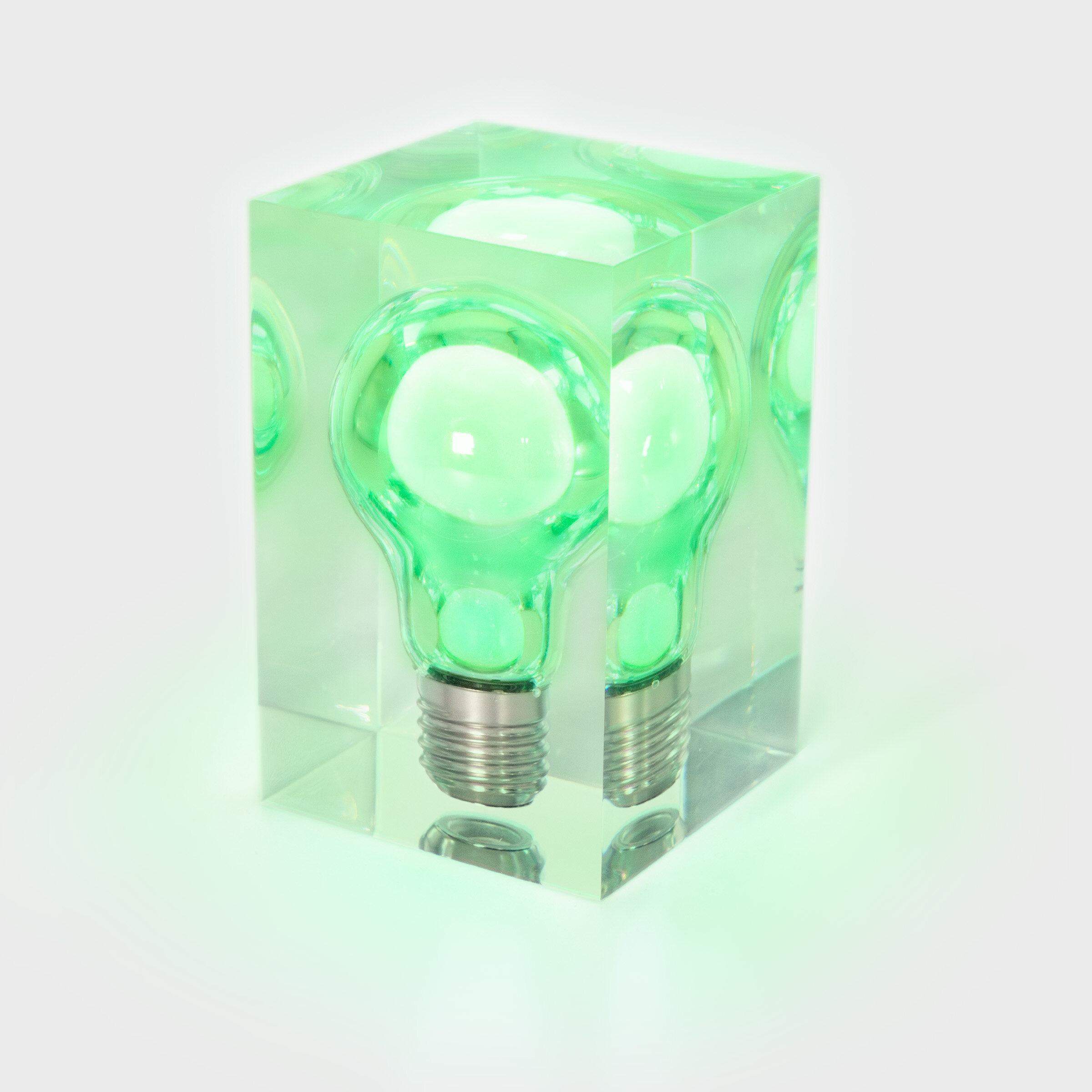 Prinde viață în întuneric, pigmentul din interiorul becului emite o strălucire subtilă, liniștită. Se reincarca in timpul zilei. Pigmentul care strălucește în întuneric este prins într-un bec adevărat. Becul este apoi învelit într-un bloc solid de rășină acrilică lustruită.