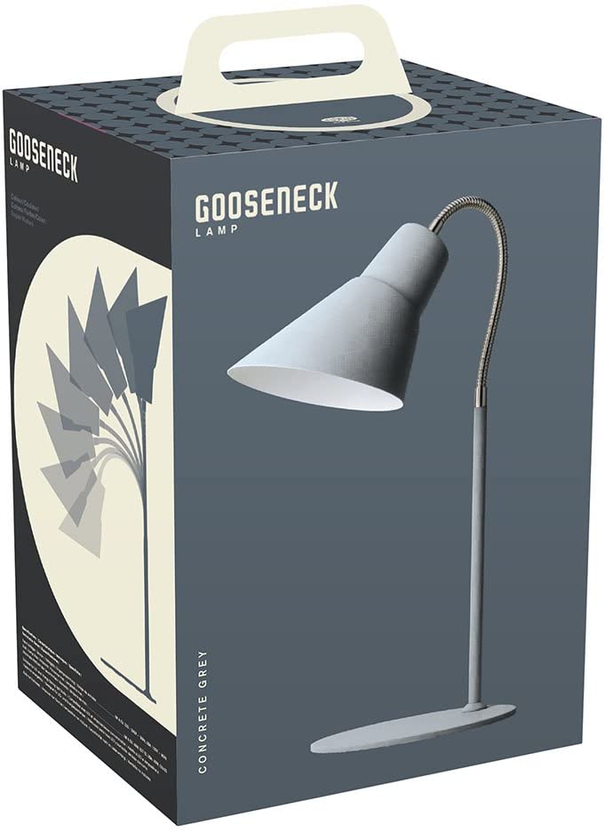 Luminați orice suprafață într-o eleganță subestimată cu această lampă de gâscă din lemn sălbatic în gri betonat. Dispunând de un gât ușor reglabil, o bază rotundă și un difuzor mare pentru a răspândi lumina direct dedesubt, această lampă de masă este adăugarea perfectă pentru orice birou, noptieră sau suprafața camerei de zi. Corpurile metalice periate, flexurile împletite și întrerupătorul de cablu la îndemână sunt lucrate cu grijă pentru a asigura un finisaj flexibil. Prezentat într-o cutie cadou potrivită. Necesită bec maxim 40W (nu este inclus).