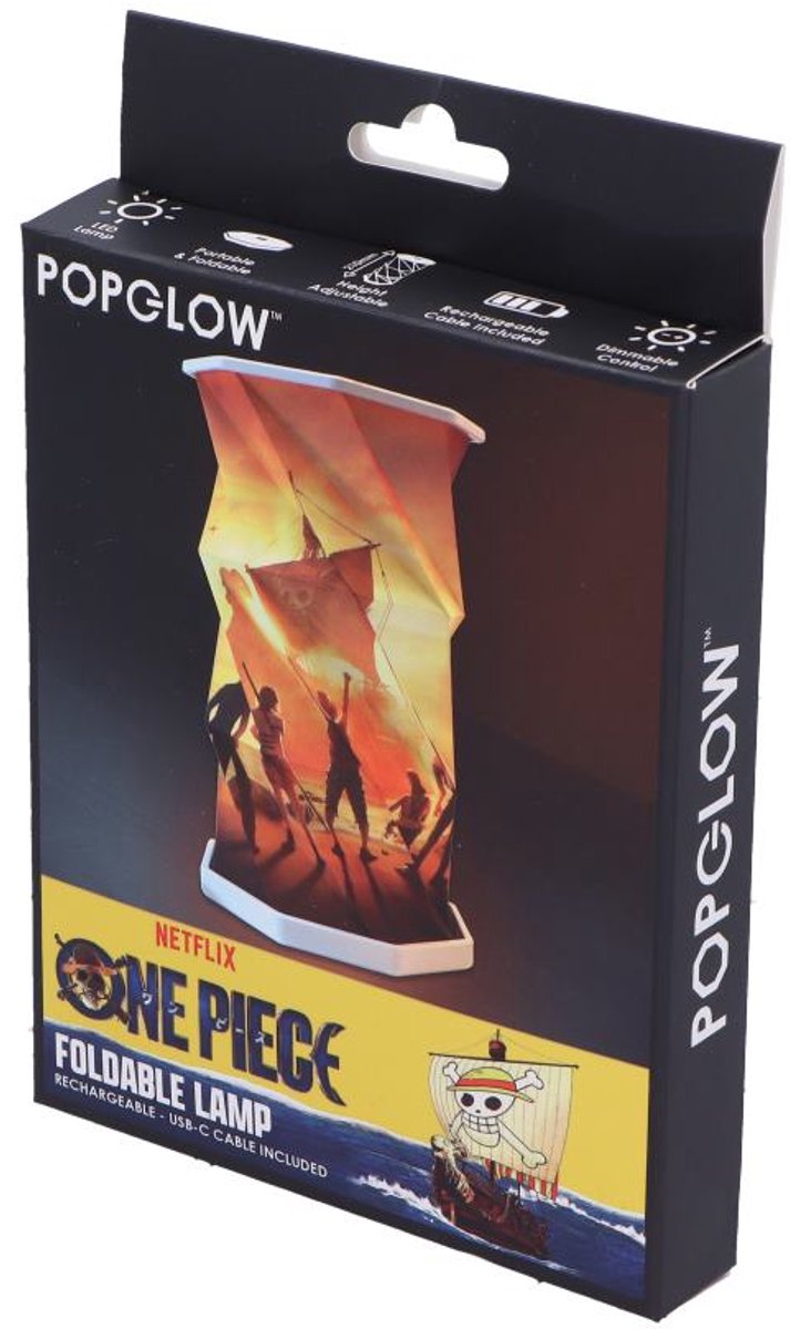 Lampa pliabilă PopGlow One Piece Straw Hat Crew este o piesă deosebită pentru orice colecție de anime, care iese în evidență în orice încăpere. Creată cu pliuri geometrice elegante și imprimeu viu, în culori intense, această lampă atrăgătoare îi înfățișează pe îndrăgiții pirați stând împreună în fața navei Thousand Sunny, într-un cadru spectaculos de apus.
