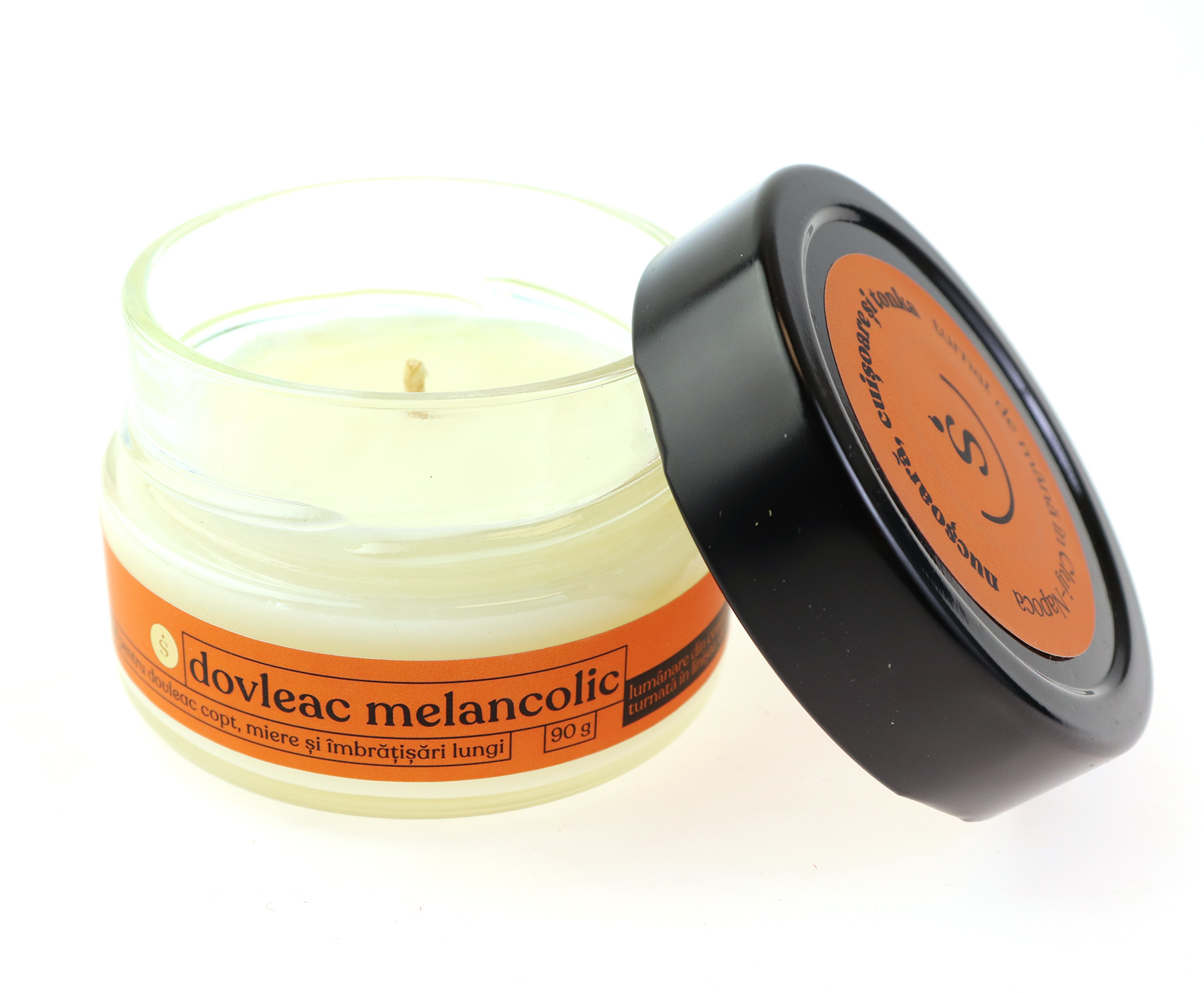 Lumânare din ceară pură de soia 90g. Lumânarea arde 25h și are un fitil din bumbac organic, produs sustenabil și non-toxic.