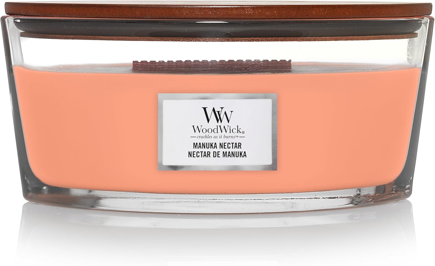 Forma acestei lumanari parfumate - Manuka Nectar este ovală, pentru a ocupa cât mai puțin spațiu.