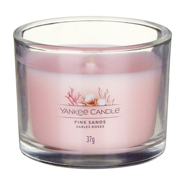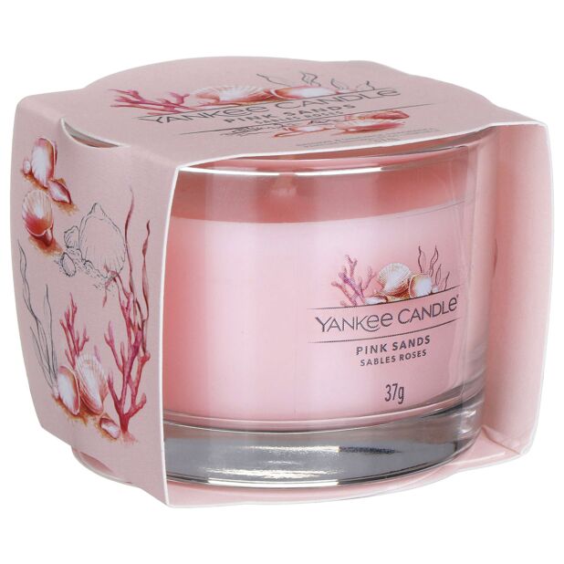 Aduceți aroma frumoasă a nisipurilor roz în casă cu această lumânare votivă parfumată de la Yankee Candle.