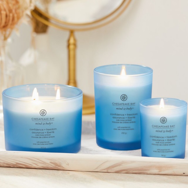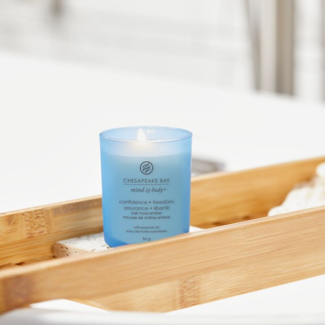 Experimentează o călătorie spre starea de bine, plină de parfumuri, cu ajutorul colecției Mind & Body de la Chesapeake Bay. Din momentul primei aprinderi, vei fi vrăjit - parfumul care îmbunătățește starea de spirit, ceară din soia infuzată cu uleiuri esențiale pure și sticla mată ușor colorată, creează o senzație de liniște, ca la spa. Capacul cu granulație de lemn adaugă un element mângâietor al naturii, făcând din această lumânare un cadou frumos pentru ține sau pentru alții.