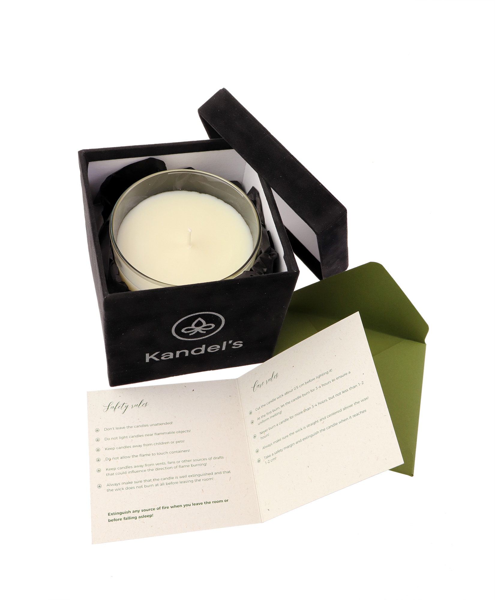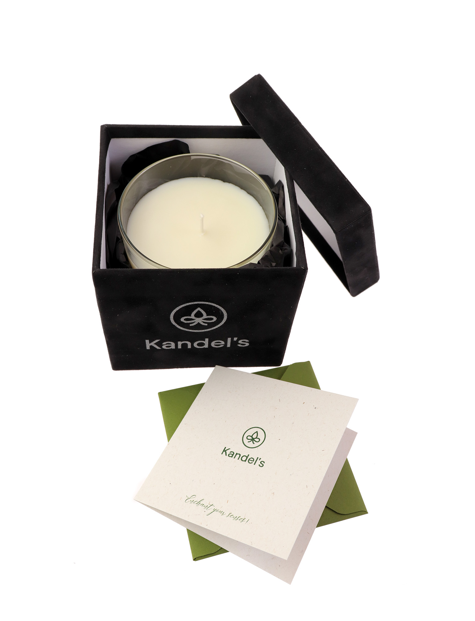 Obiecte de design elegante, care inobileaza atmosfera placuta prin simplitate, rafinament si parfum deosebit lumanarile Kandel’s sunt create in totalitate din ceara naturala din soia, iar fitilul este 100% din bumbac.