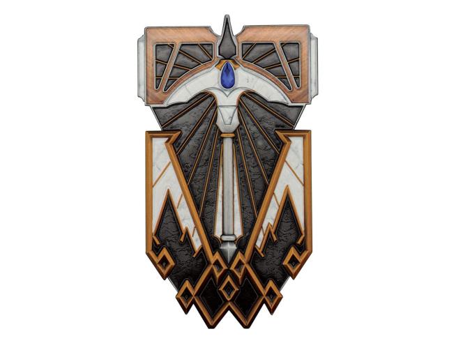 Orașul minier mitic Mirabar a menținut o relație simbiotică între Piticii Scut, adăpostiți în subteran, și oamenii, adăpostiți la suprafață. Moștenirea minieră a acestui oraș se reflectă în această blazonă de lingou de colecție, cu forma recognoscibilă de târnăcop. Această piesă de colecție licențiată oficial este limitată la 5.000 de exemplare în întreaga lume, fiecare fiind numerotată individual. Un stand de prezentare este inclus în cutia de prezentare.