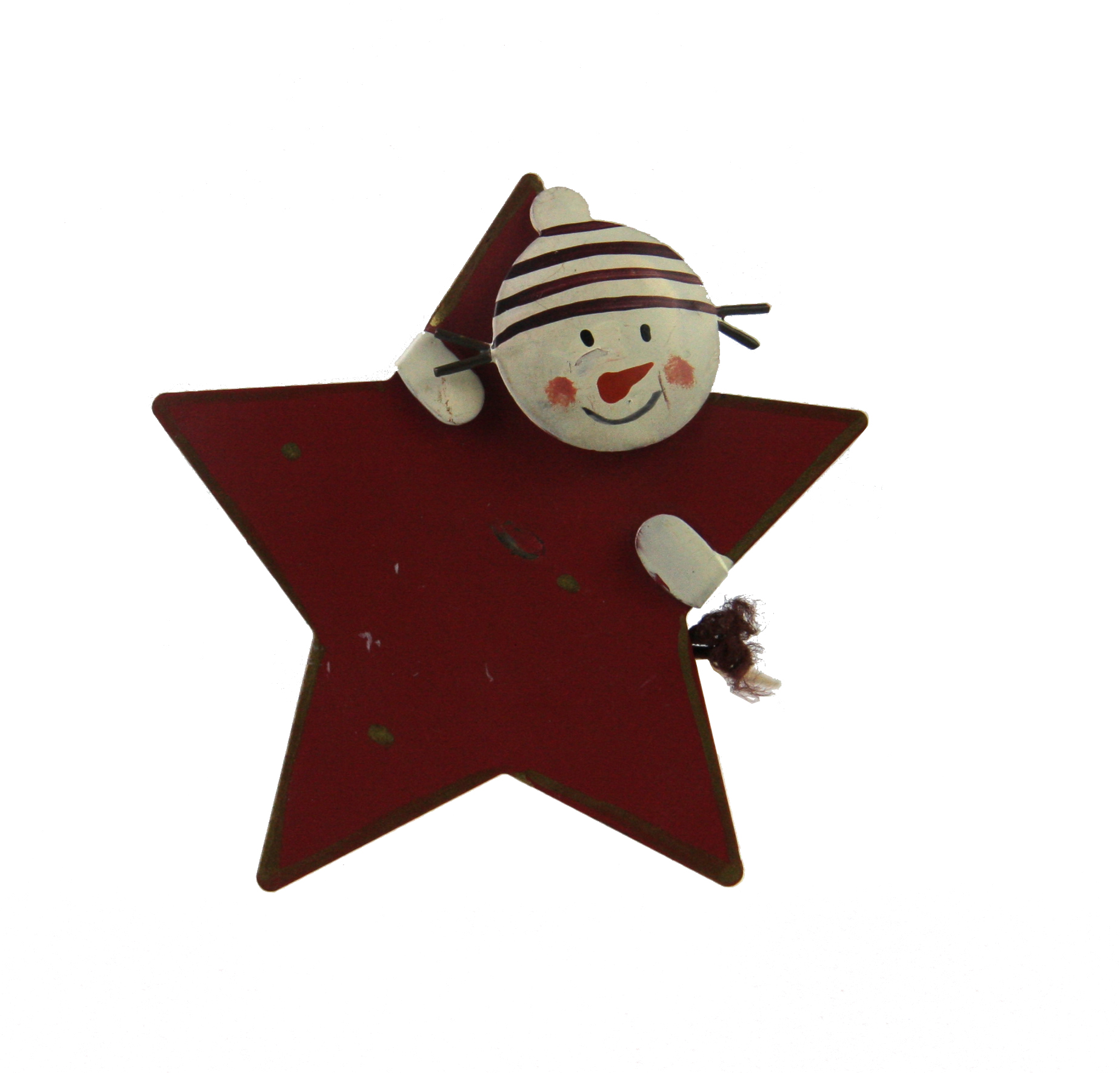Obiect decorativ pentru pomul de Crăciun în formă de steluță cu om de zăpadă.