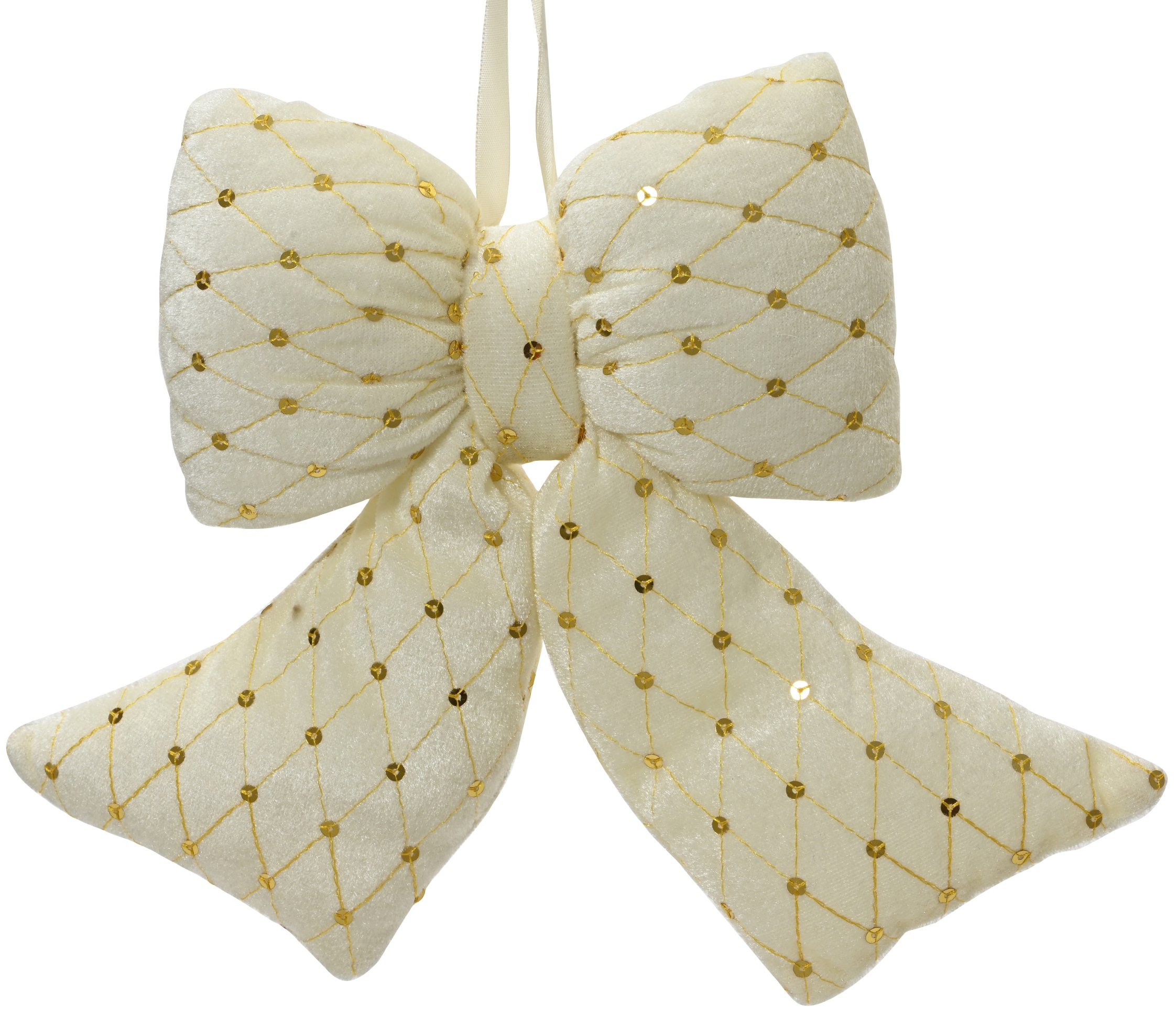 Ornament pentru brad - Bow Velvet Gold Spangles - Ivory, 37 cm