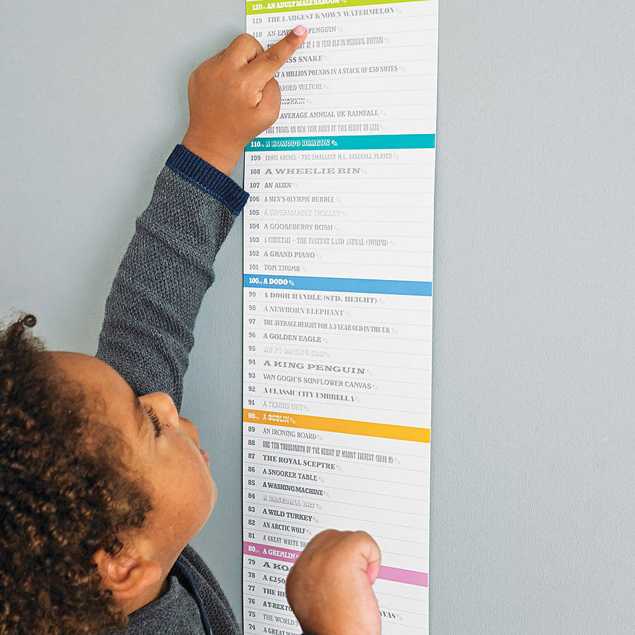 Poste pentru măsurarea înălțimii, care le permite copiilor să-și măsoare înălțimea pe o scară uimitoare de creaturi mitice, păsări, fiare, animale și obiecte iconice. Măsoară-te cu un pui de girafă, cu Napoleon, o cutie poștală, Elvis sau Tutankhamon. Descoperiți și aflați despre tot felul de obiecte și creaturi. Un cadou grozav pentru copiii în creștere.