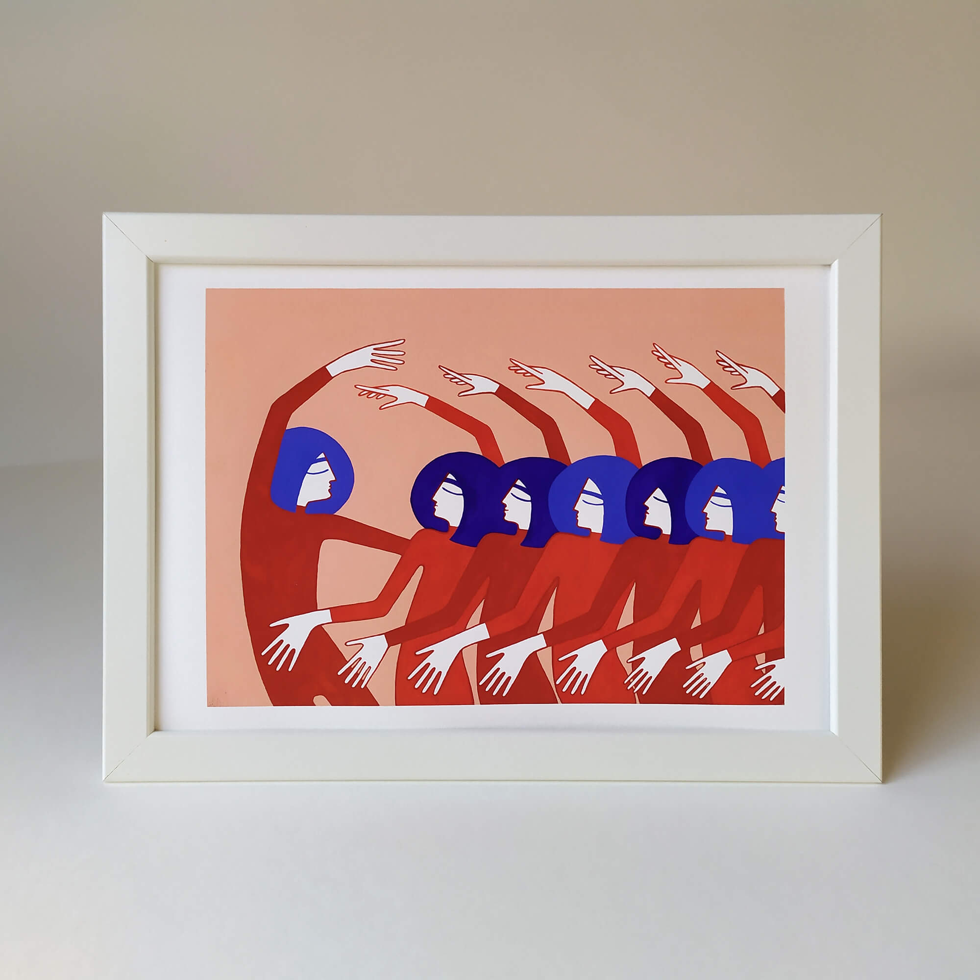 Print de artă după o ilustrație de Ana Bănică, imprimat pe hârtie mată, texturată, 100% alfa-celuloză, cu o densitate de 310 gsm, fără acid și lignină.