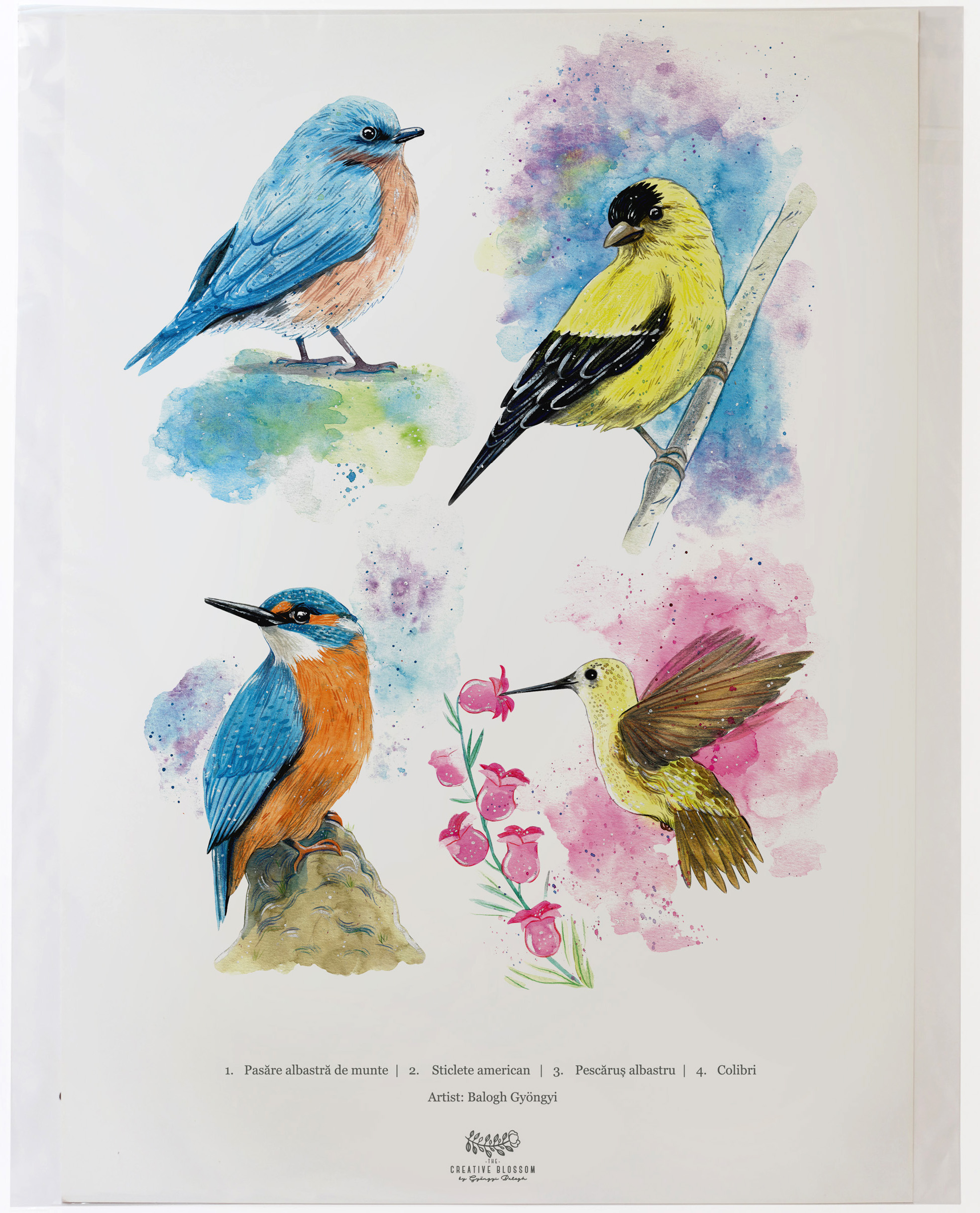 Print de artă - Specii de păsări - pictură în acuarelă (în folie)