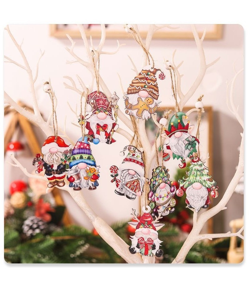 Set 18 decoratiuni Craciun - Turta dulce / Gnomi, din lemn (mai multe modele)