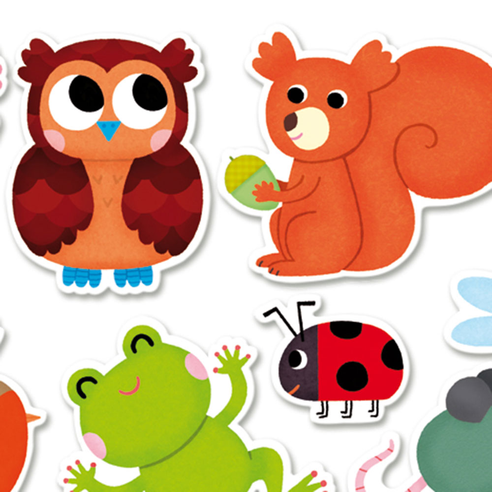 Datorită acestor douăzeci de magneți de grădină din lemn, copiii își pot imagina o mulțime de povești.