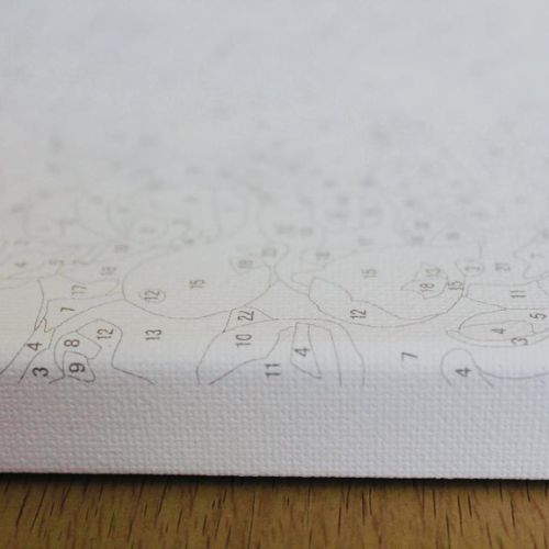 - pânză de bumbac fixată pe o ramă din lemn cu desen conturat în numere