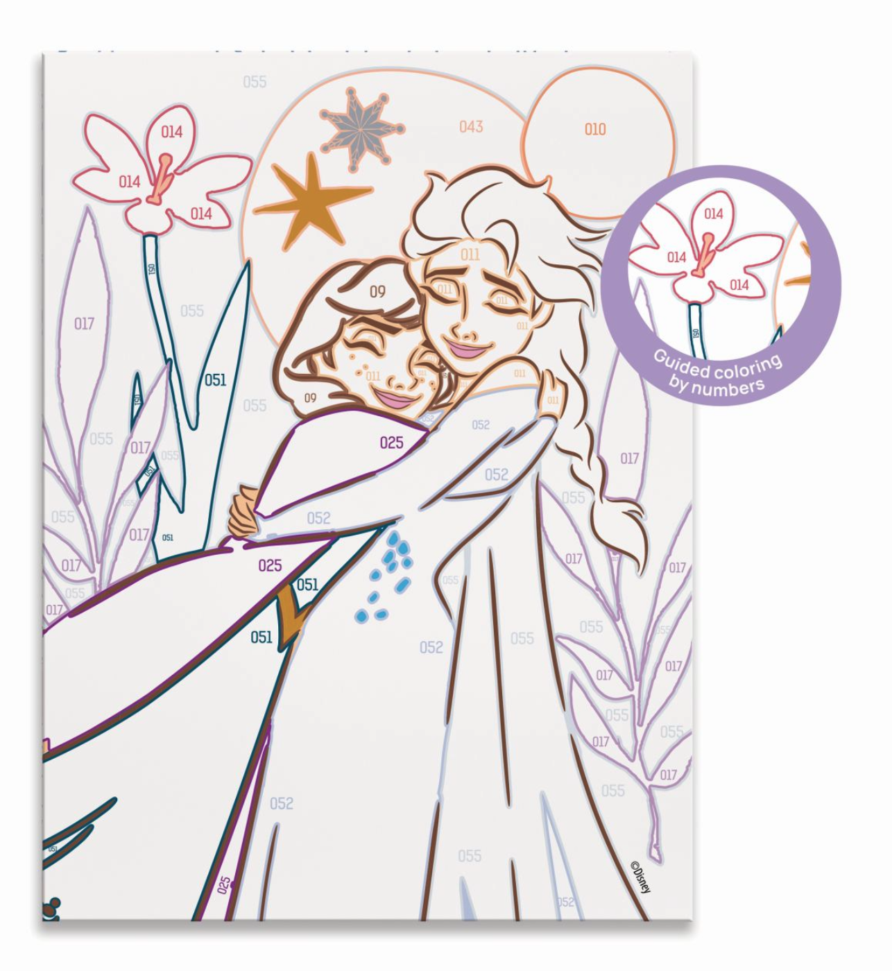 Acest set creativ le permite copiilor să realizeze o pictură vibrantă cu îndrăgita animație Disney, Frozen, folosind tehnica picturii după numere.