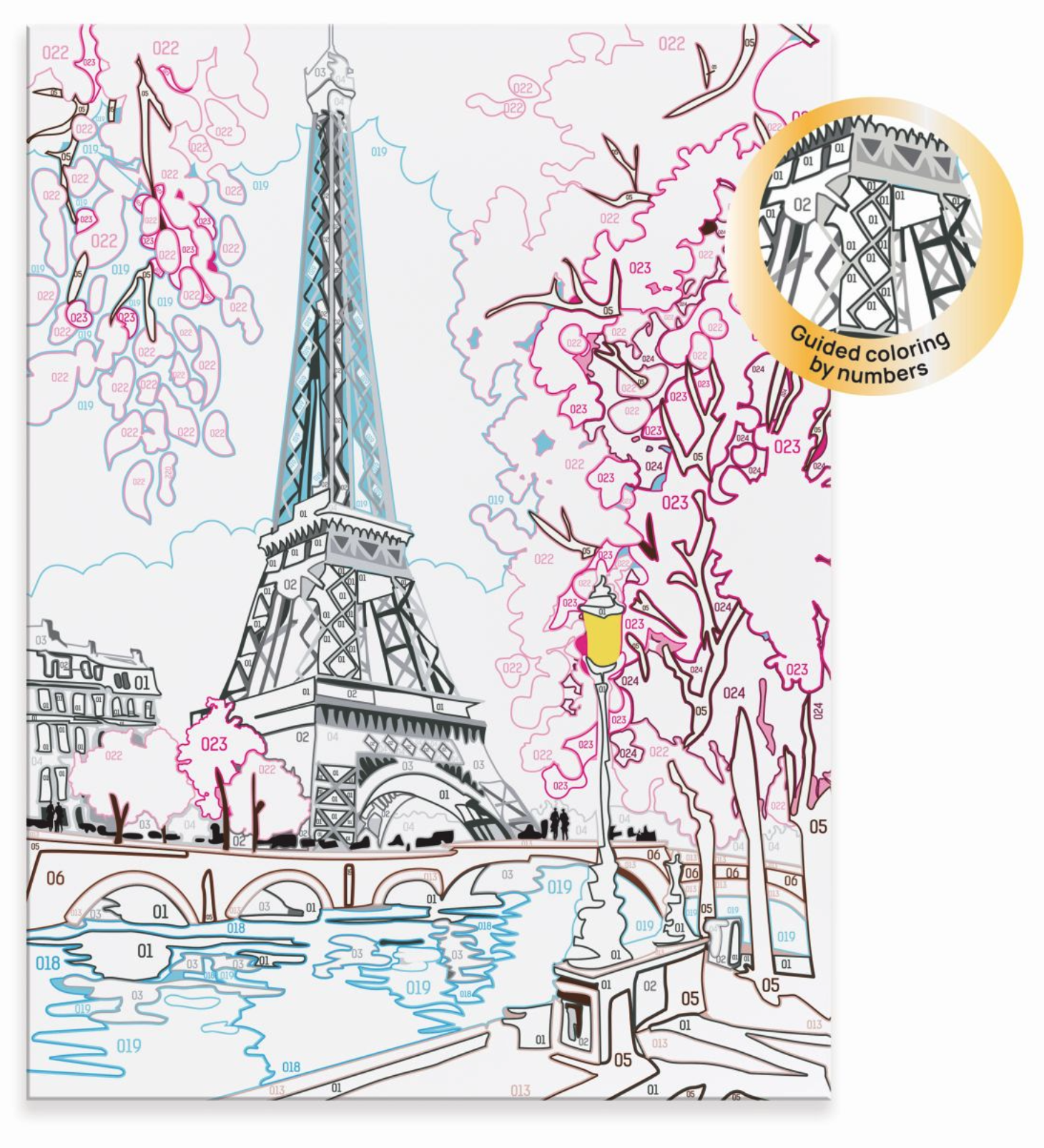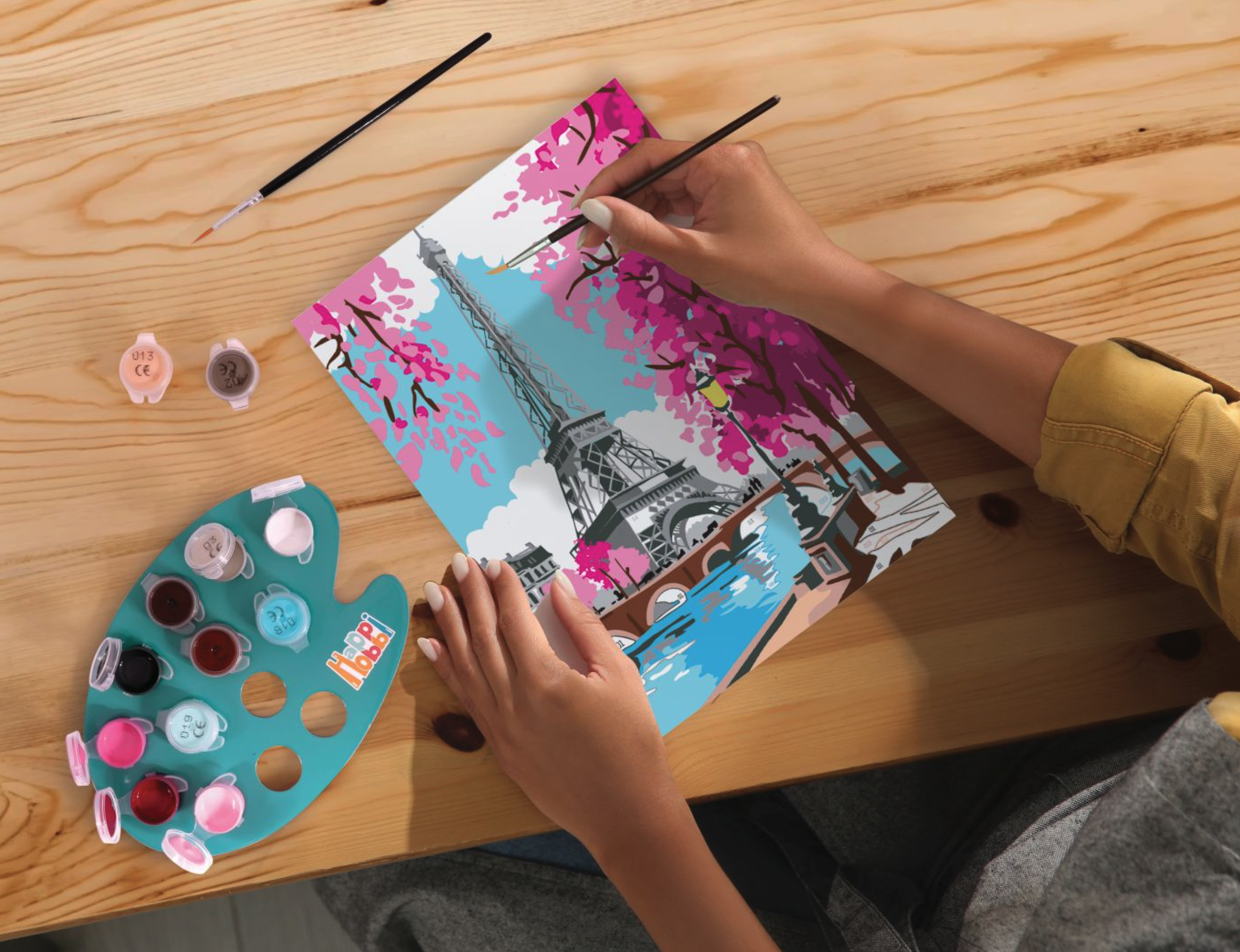 Acest set creativ le permite copiilor să picteze o scenă fermecătoare a Parisului în timpul primăverii, dezvoltându-și abilitățile artistice și îmbunătățindu-și coordonarea mână-ochi.