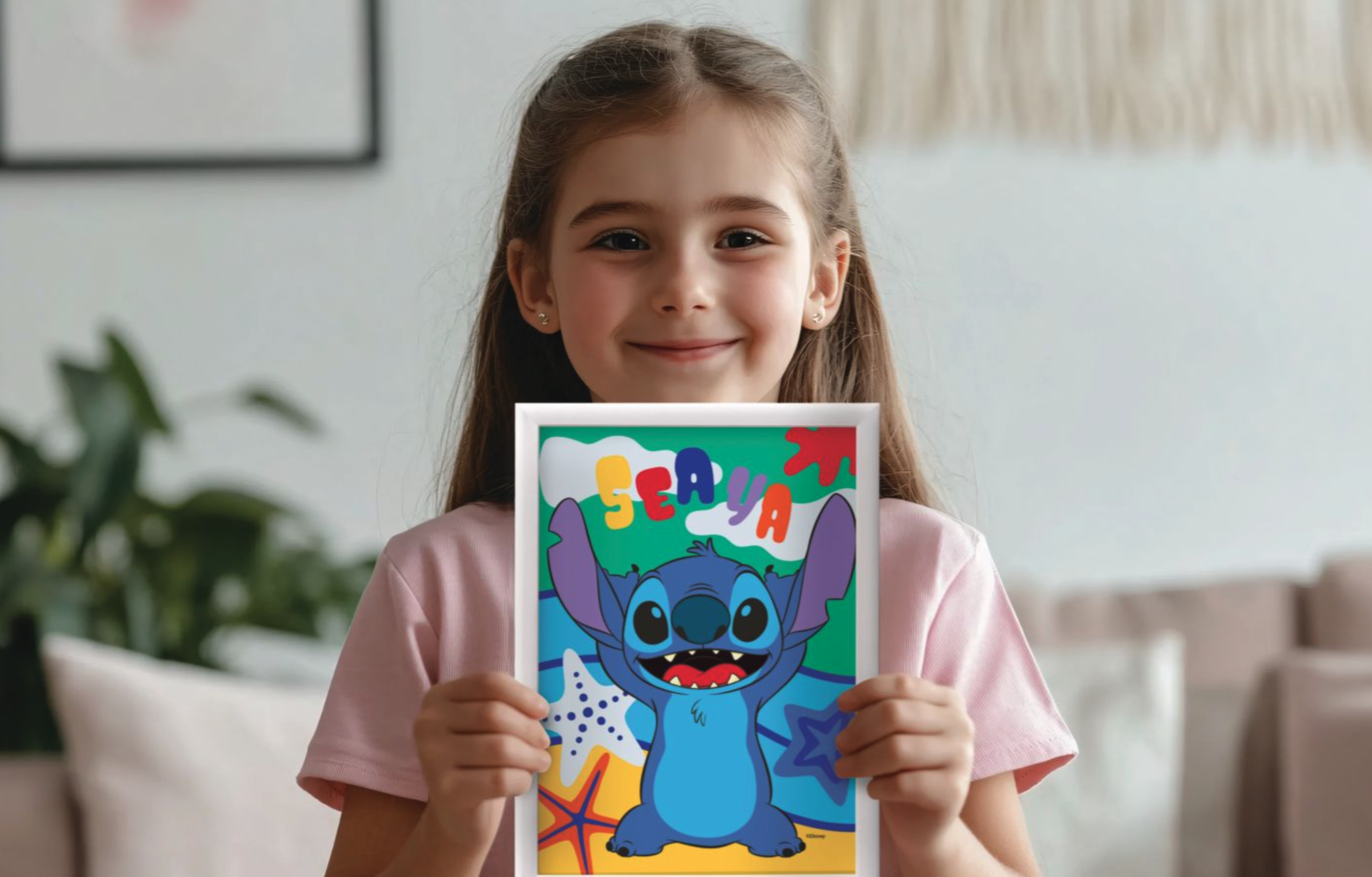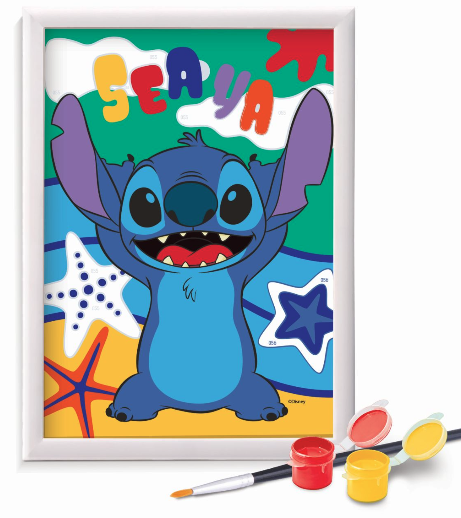 Acest set creativ le permite copiilor să realizeze o pictură vibrantă cu îndrăgitul personaj Disney, Stitch, folosind tehnica picturii după numere.