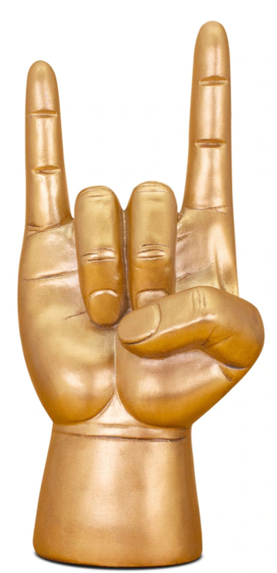 Iubești muzica, dar uiți mereu unde ți-ai pus căștile? Atunci Rock On Hand este pentru tine. Această mână magnifică aurie surprinde adevăratul spirit al Rock & Roll-ului. Fie că ești fan al anilor '50, al anilor '60 sau al oricărui stil muzical, Rock On Hand te asigură că ai căștile gata când dorești.