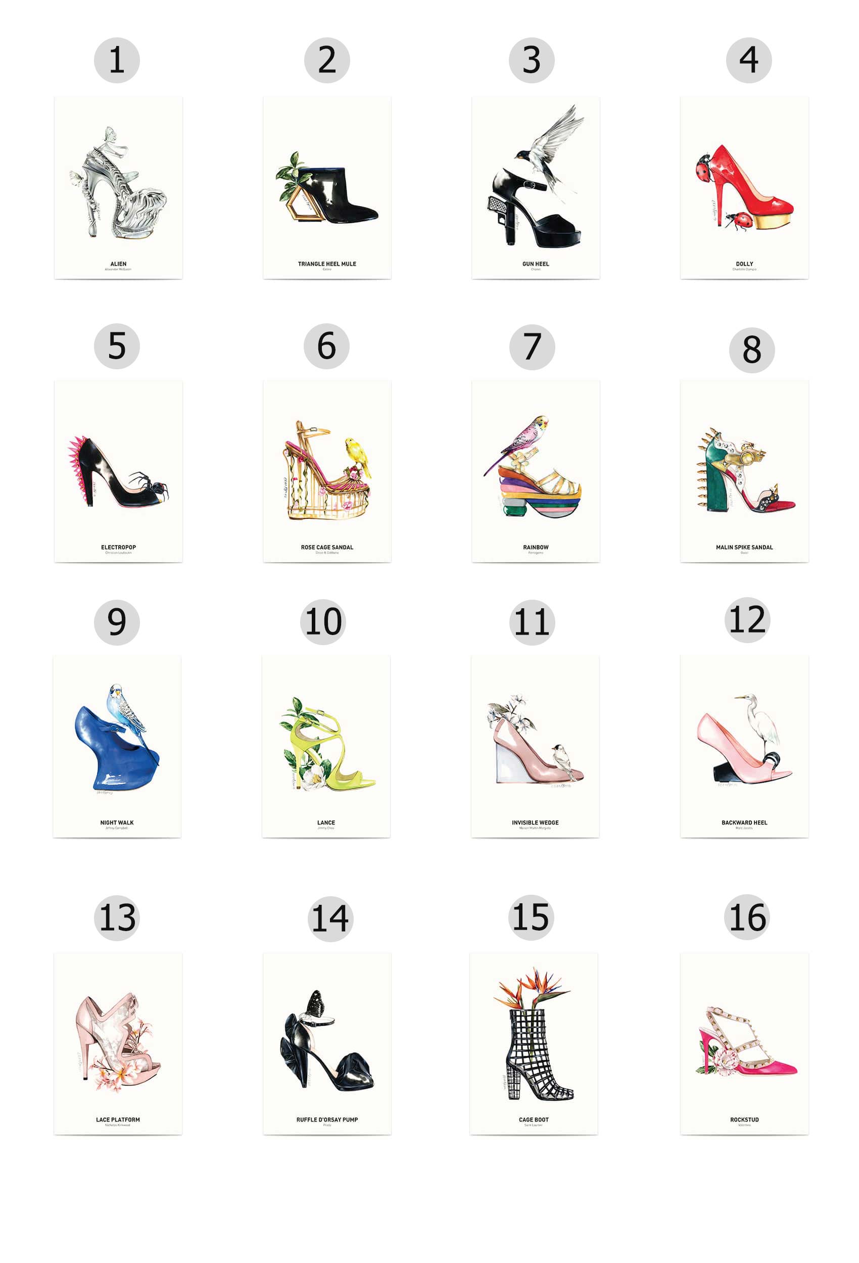 Pentru iubitorii de încălțăminte, aceste cărți postale ce conțin ilustrații de Antonio Soares sunt perfecte pentru a fi trimise prietenilor sau oricărei persoane care îndrăgește pantofii.