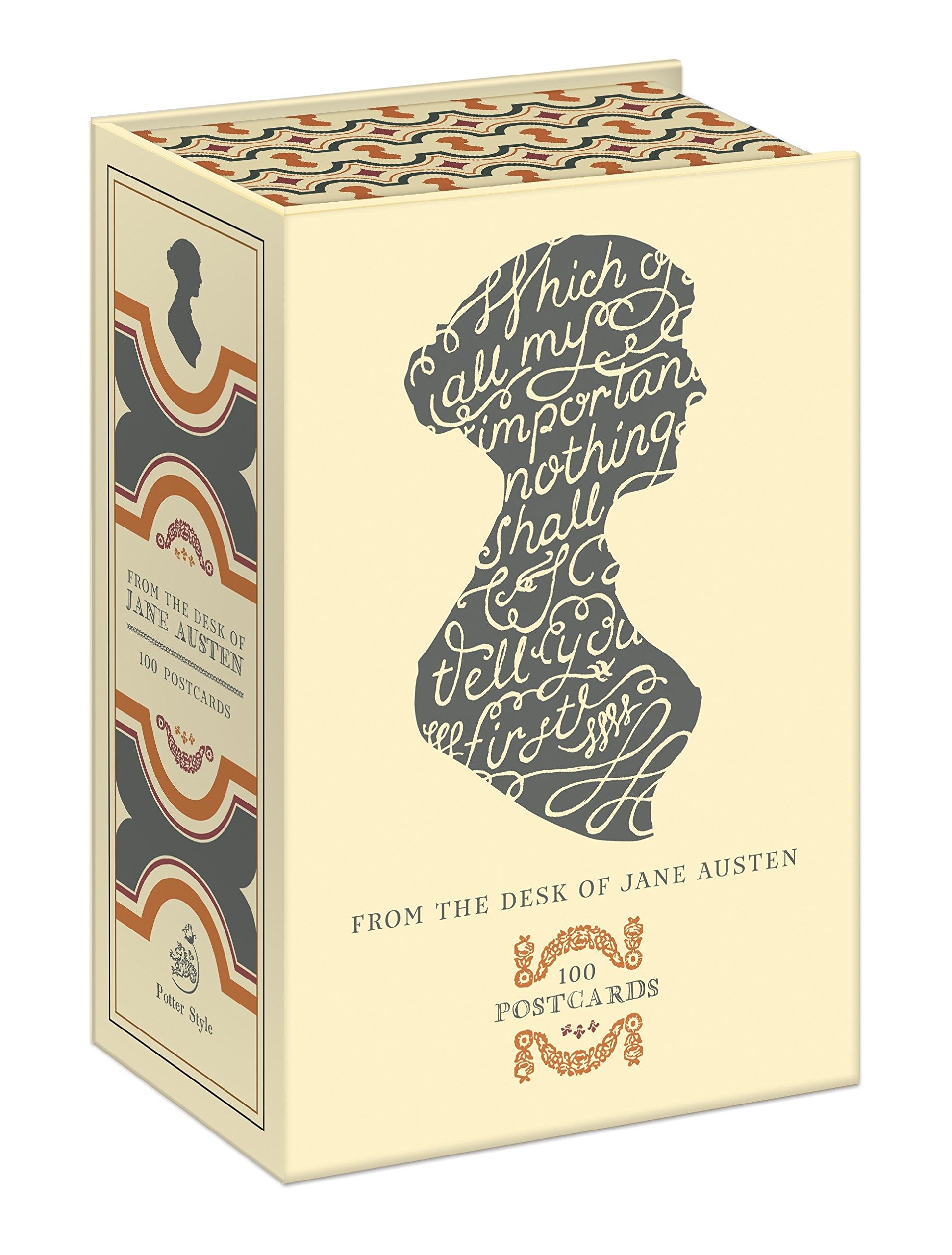 “Expect a most agreeable letter, for having nothing at all to say, there shall be no check to my genius from beginning to end.” Jane Austen’s bustling life rarely left her without news to share, but even in those spare moments with nothing to pen, her incandescent wit manages to shine throughout her letters. Collected from her extensive collection of personal correspondence, this box contains 100 postcards featuring 25 of her most beloved witticisms (reproduced 4 times). Housed in a beautifully designed keepsake box, this set of postcards makes a thoughtful gift for any Austen lover.