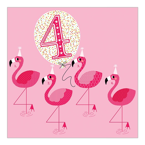 Felicitare - 4 Flamingos Pink, din carton, cu un design unic si intens colorata, potrivita pentru aniversare.