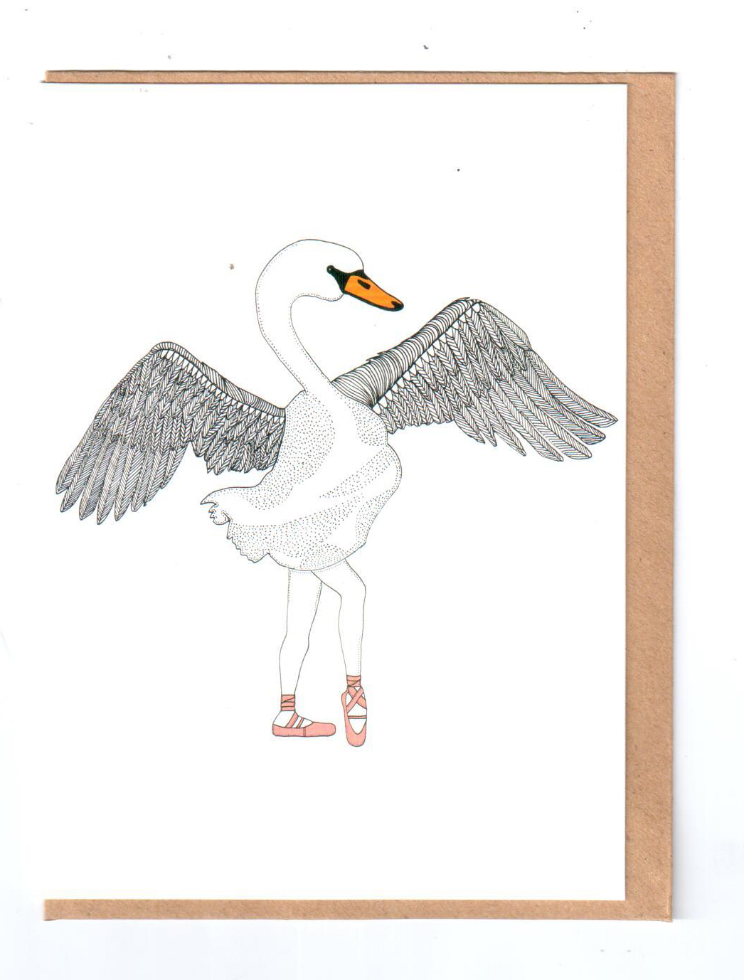 Felicitare - Animal Legs: Swan Lake, cu un design unic si intens colorata, prevazut cu un plic crem.