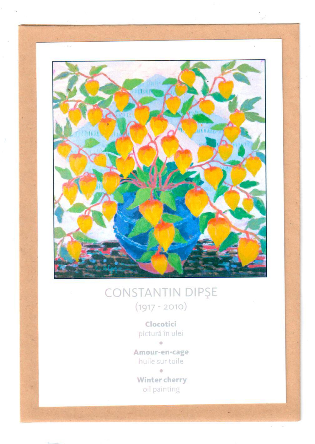 Felicitarea ilustreaza celebra pictură în ulei, Clocotici realizată de pictorul Constantin Dipșe.