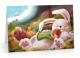 Felicitare cu micuța zână Lia admirând puii de vulpiță, culcușiți în blana mamei lor.
