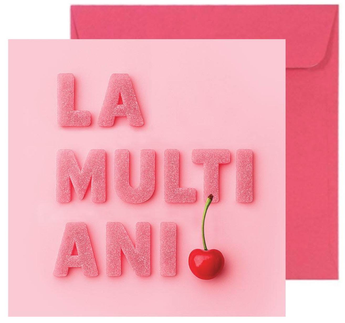 Felicitare - La multi ani (Jeleu)Colorată, veselă și delicioasă ca o bomboană, felicitarea cu litere din jeleu roz și cireașă este alegerea ideală pentru un mesaj plin de energie și bucurie.