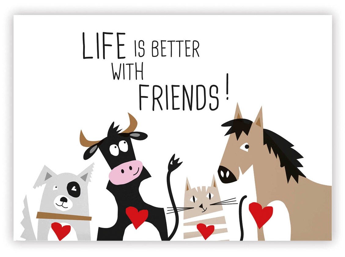 Felicitare cu mesajul Life is Better With Friends! (Viața e mai bună alături de prieteni)