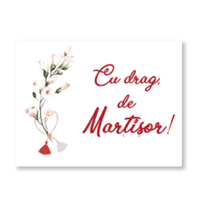 Felicitare mărțișor, carton alb mat 250gr/mp, plic alb mat de 120gr/mp