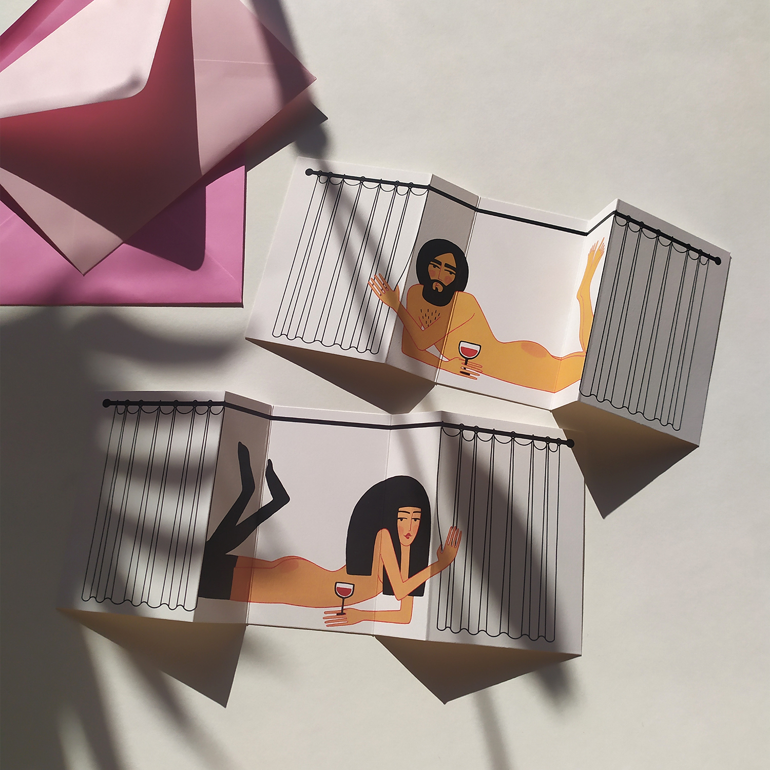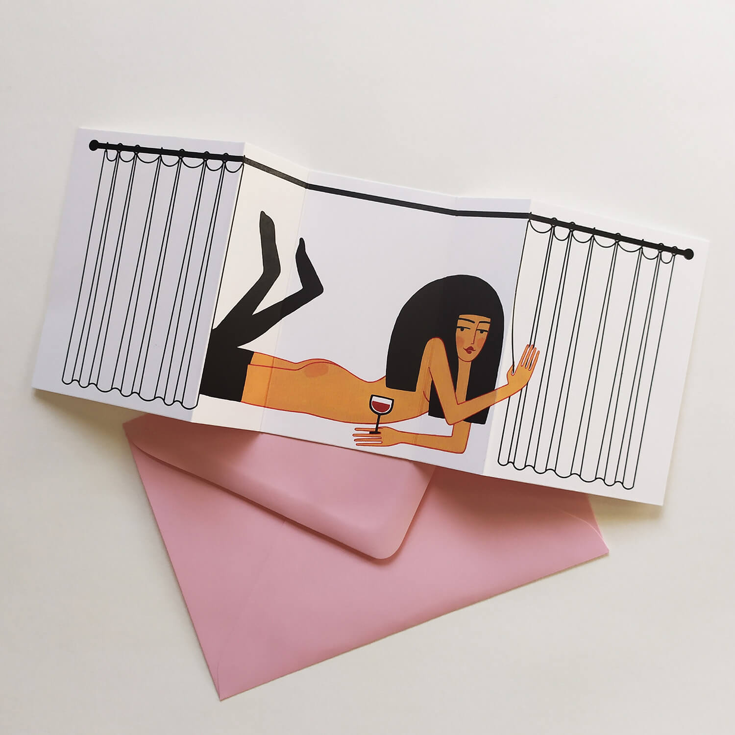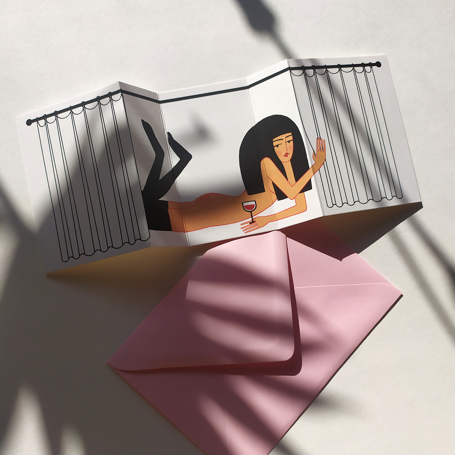 Felicitare pliabilă ilustrată de Ana Bănică.Caracteristici:hârtie mată texturată;27×10.5cm / 14×10.5cm;plic colorat.