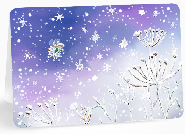 Felicitare cu micuța zână Lia dansând cu zânele fulgilor.