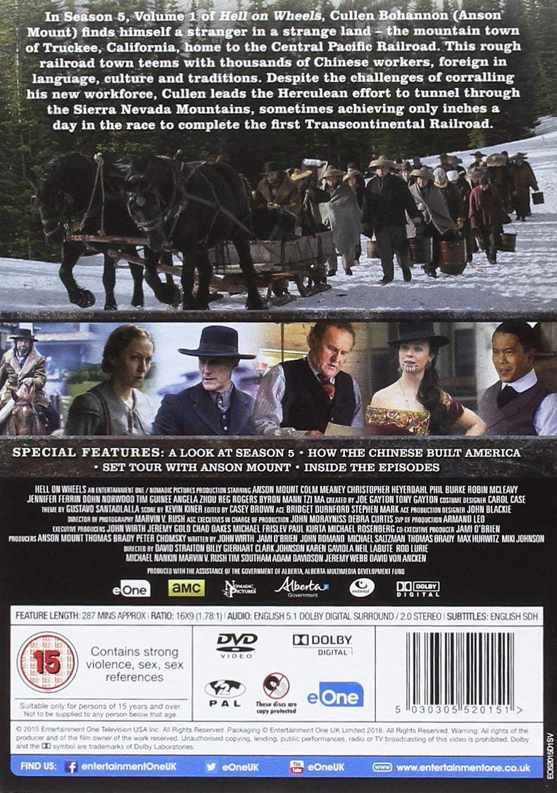 Hell on Wheels is back for its fifth and final season. Cullen Bohannon (Anson Mount) is against the clock yet again, in AMC s most thrilling and exciting television series. Cullen s dream of unity through the building of the railroad continues, and the search for his family reaches a finger-biting conclusion.