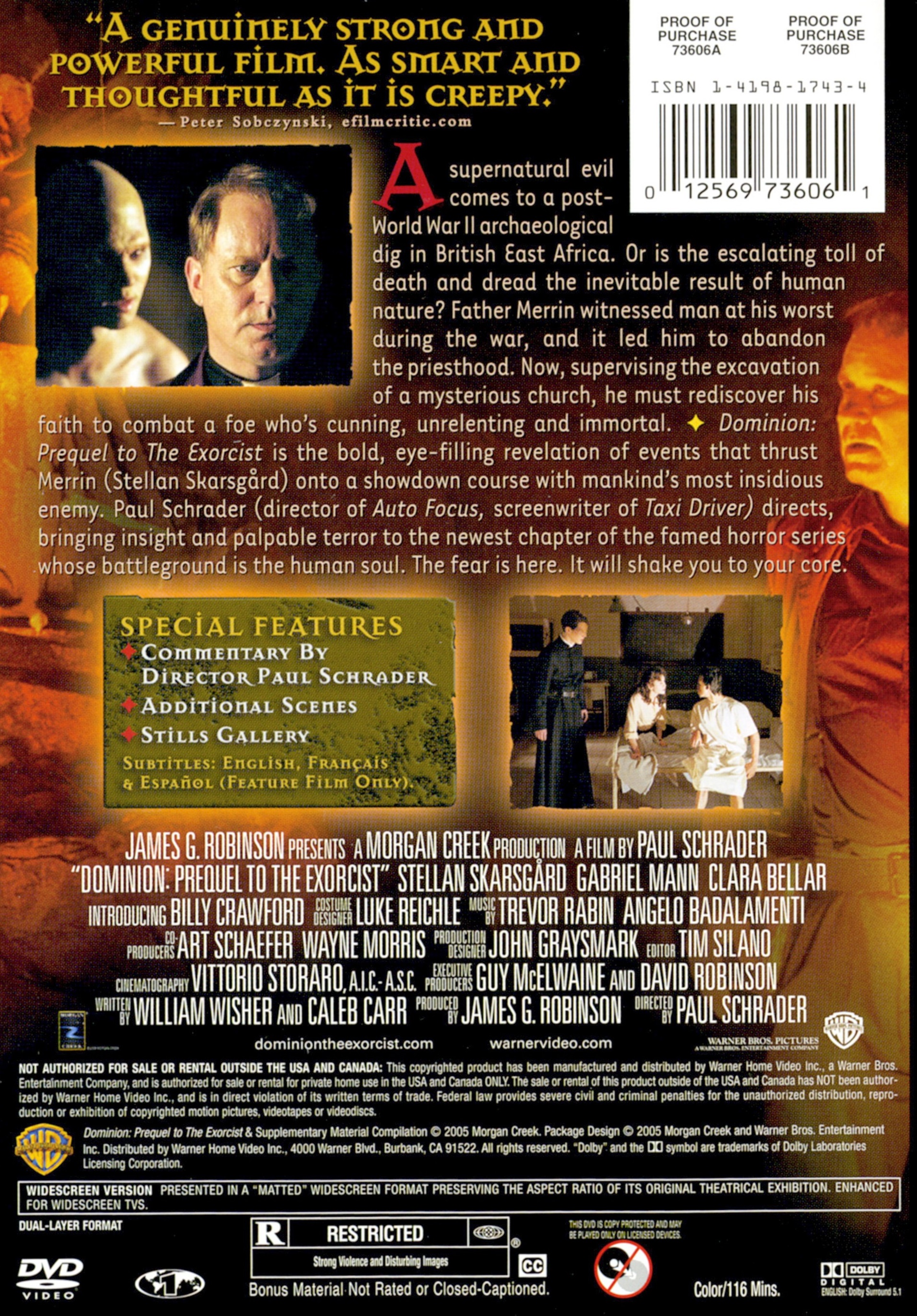 Diavolul este descoperit in timpul sapaturilor realizate de echipa de arheologi britanici in estul Africii, dupa cel de-al Doilea Razboi Mondial. Sau e vorba de o introspectie a naturii umane? Parintele Merrin (Stellan Skarsgard) a condamnat la moarte oameni in timpul razboiului si acest lucru l-a indepartat de preotie. Acum, supervizand escavarea unei biserici misterioase, el trebuie sa isi redescopere vocatia in lupta cu o fiinta vicleana, nemuritoare. Imparatia: Prolog la Exorcistul este o revelatie asupra evenimentelor pe care Parintele Merrin este obligat sa le infrunte in cursa cu cel mai mare inamic al umanitatii. Paul Schrader (regizor la Auto Focus si scenarist la Taxi Driver) regizeaza acest film picurand in suflet o teroare palpabila odata cu cel mai nou capitol al celebrei serii horror, al carei fundament este sufletul uman. Imparatia: Prolog la Exorcistul / Dominion-Prequel To The Exorcist te va zdruncina pana in maduva oaselor.
