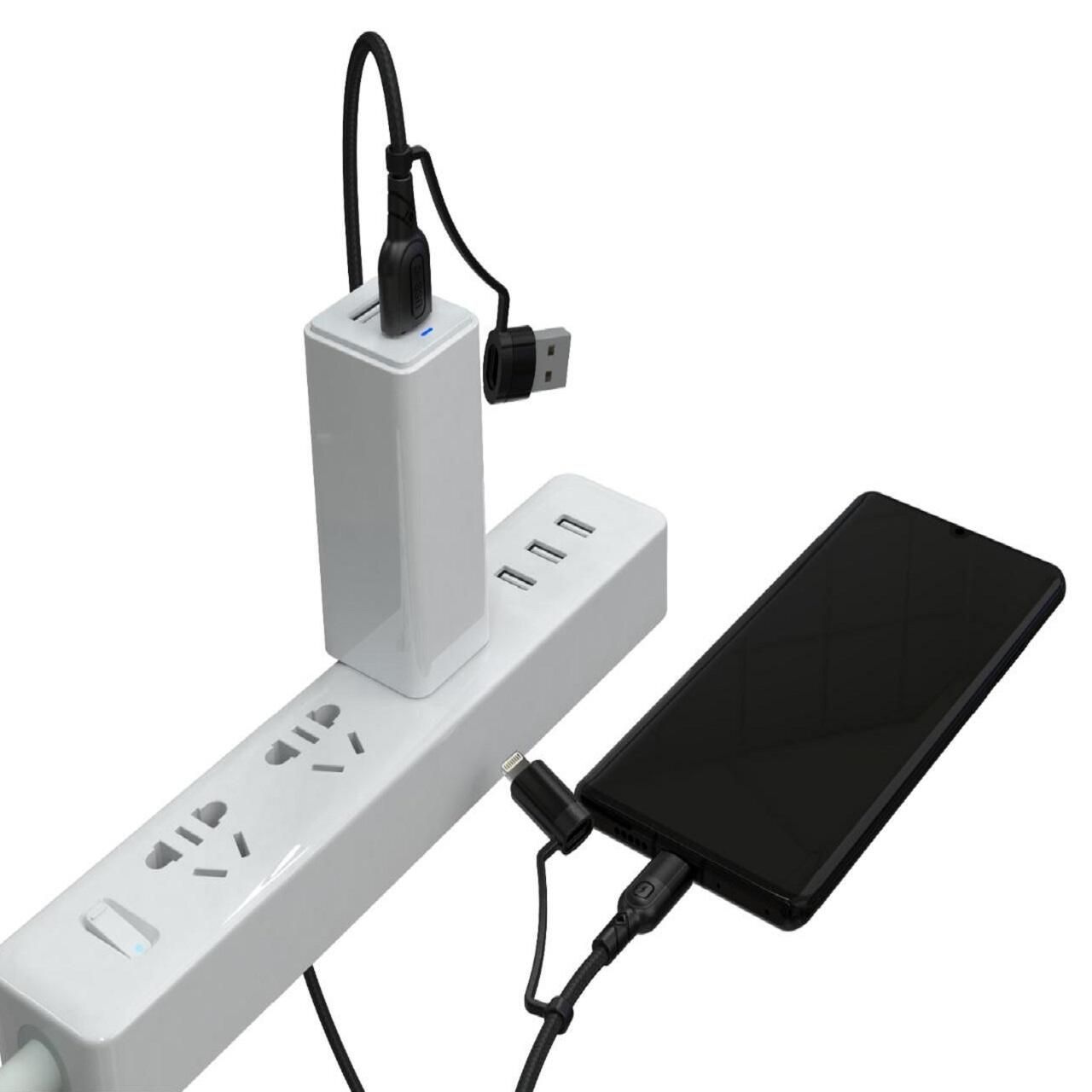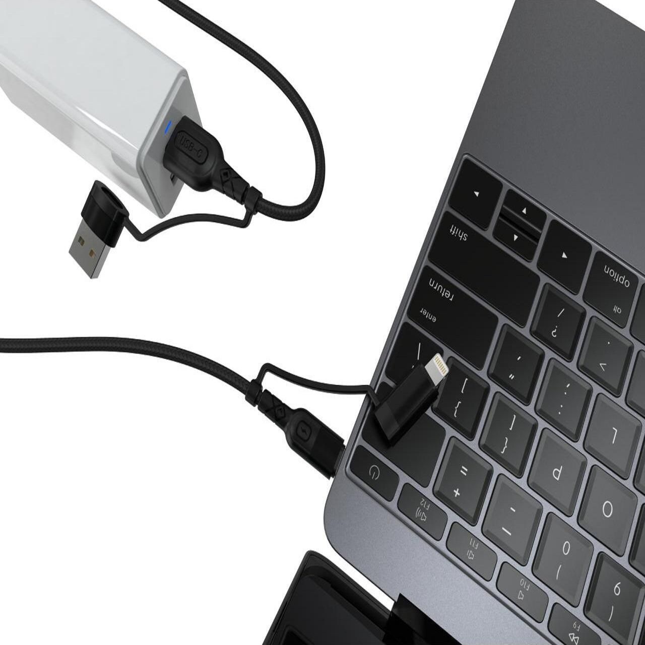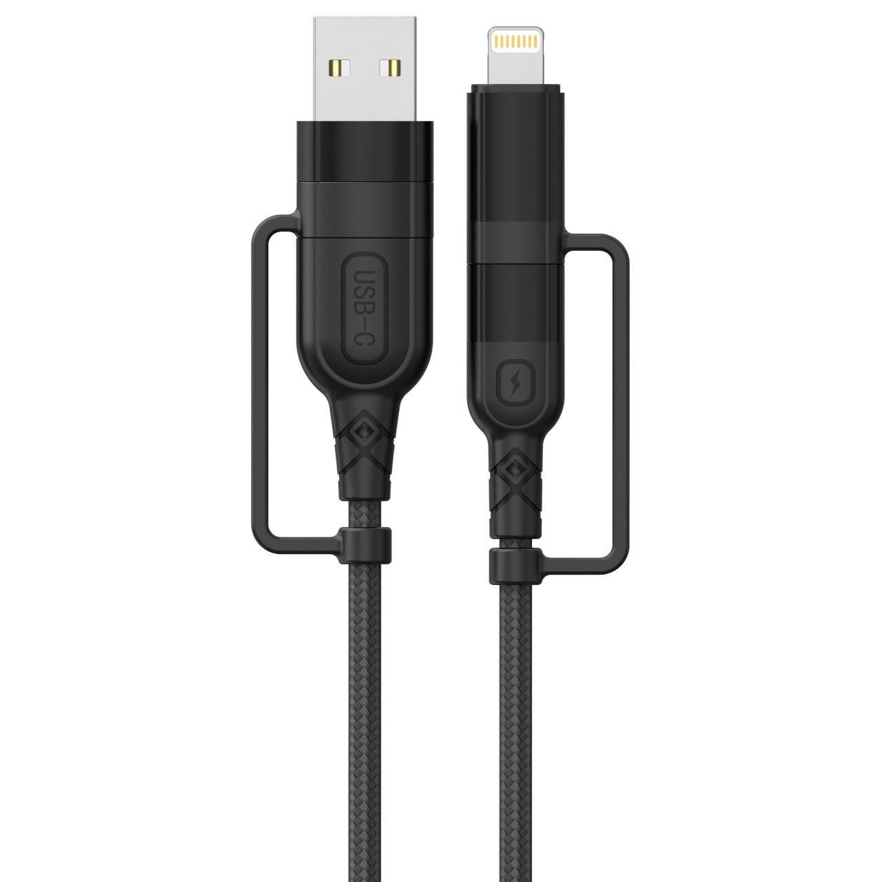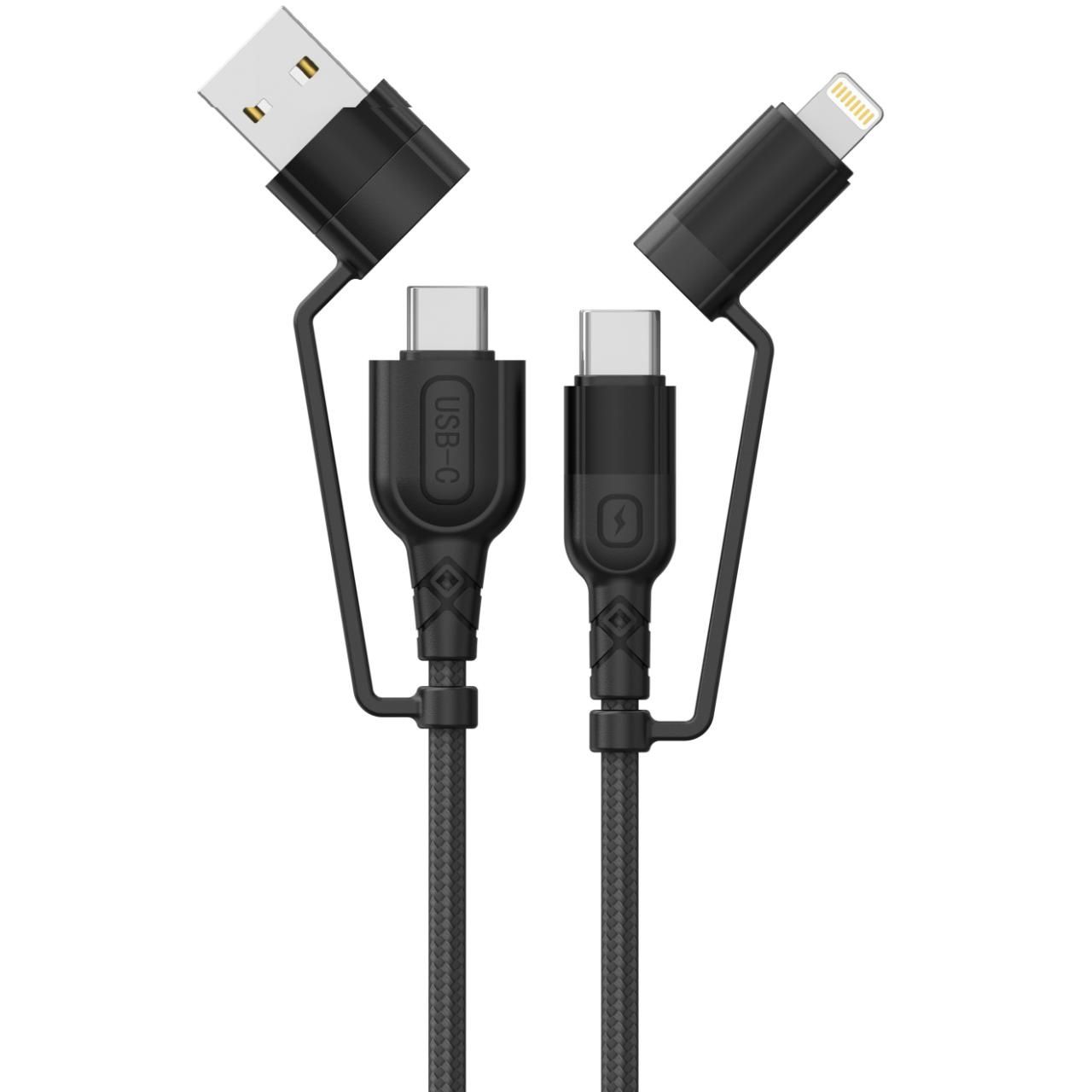 Lemontti Cablu Fisheye Series Multi-connector 4 in 1, USB-A & Type-C la Type-C & Lightning, PD, 1.2m, Negru