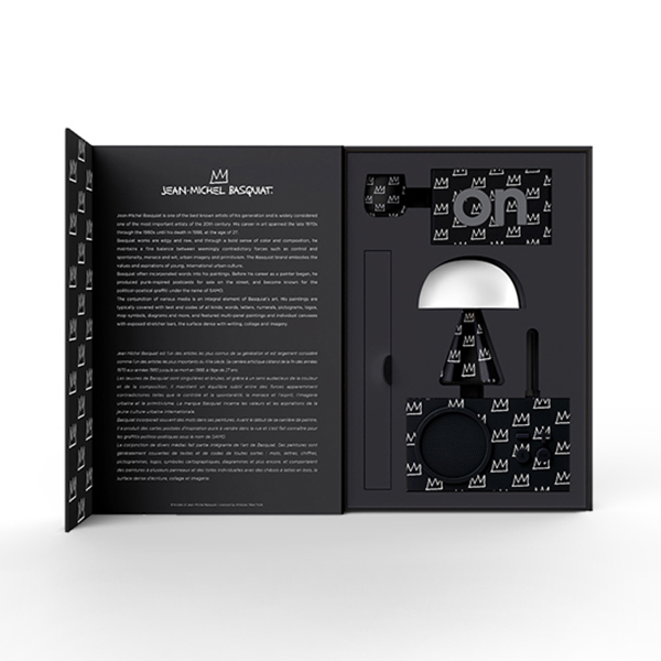 Experimentați esența captivantă a operei lui Jean-Michel Basquiat cu acest set cadou exclusiv Lexon x Basquiat. Setul are un ambalaj unic inspirat de celebrul artist, realizat cu atenție de echipa de design de la Lexon. Sunt includse patru articole Lexon inspirate de lucrările vibrante ale artistului, care creează o fuziune unică de artă și funcționalitate, inspirând și antrenând pasionații de artă într-un mod care depășește domeniul tradițional al designului de produse.