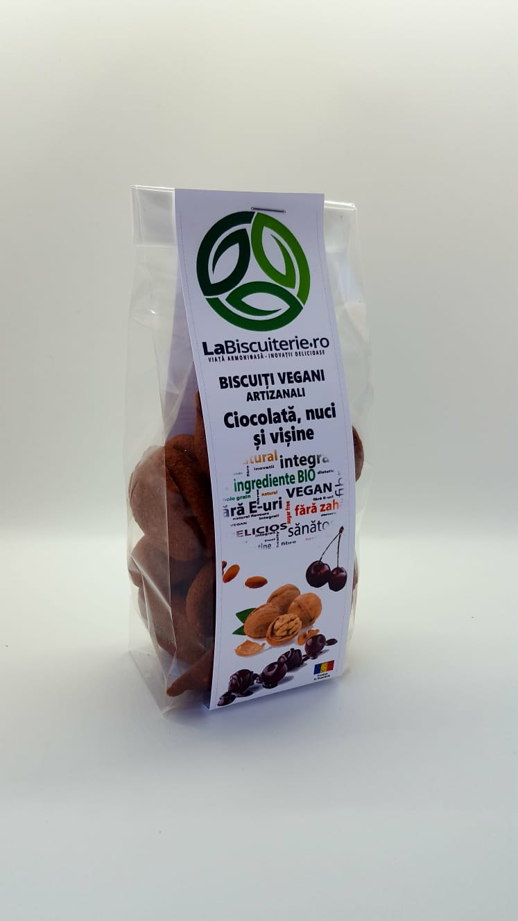 Biscuiti vegani fara zahar cu ciocolata, nuci si visine - cantitate neta 140g