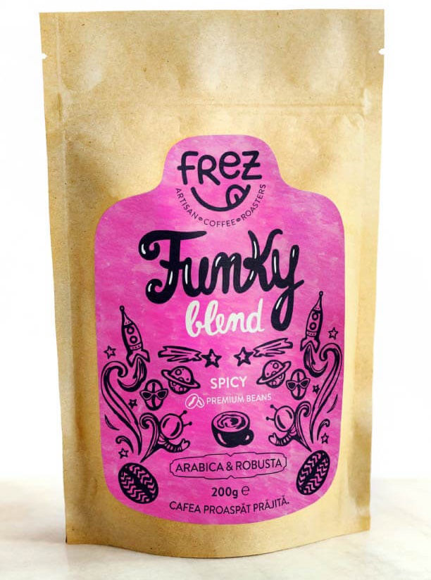 Blendul nostru cel funky strânge laoaltă cafele din America de sud, America centrală și Asia. Dacă vei simți în ceașcă câte un mic kick la fiecare gură de cafea, să știi că-i de la doza de robusta. Acesta este mai amară și are mai multă cofeină decât arabica. Prăjirea e făcută separat pentru fiecare soi de cafea, căci fiecare are rețeta sa.