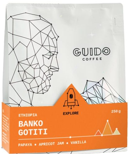 Banko Gotiti este una dintre cele mai apreciate stații de spălare din regiunea Kochere, Etiopia, cunoscută pentru cafelele sale cu intensitate aromatică și claritate remarcabilă. Boabele sunt cultivate la peste 1900 m altitudine și uscate natural la soare, pe paturi africane.