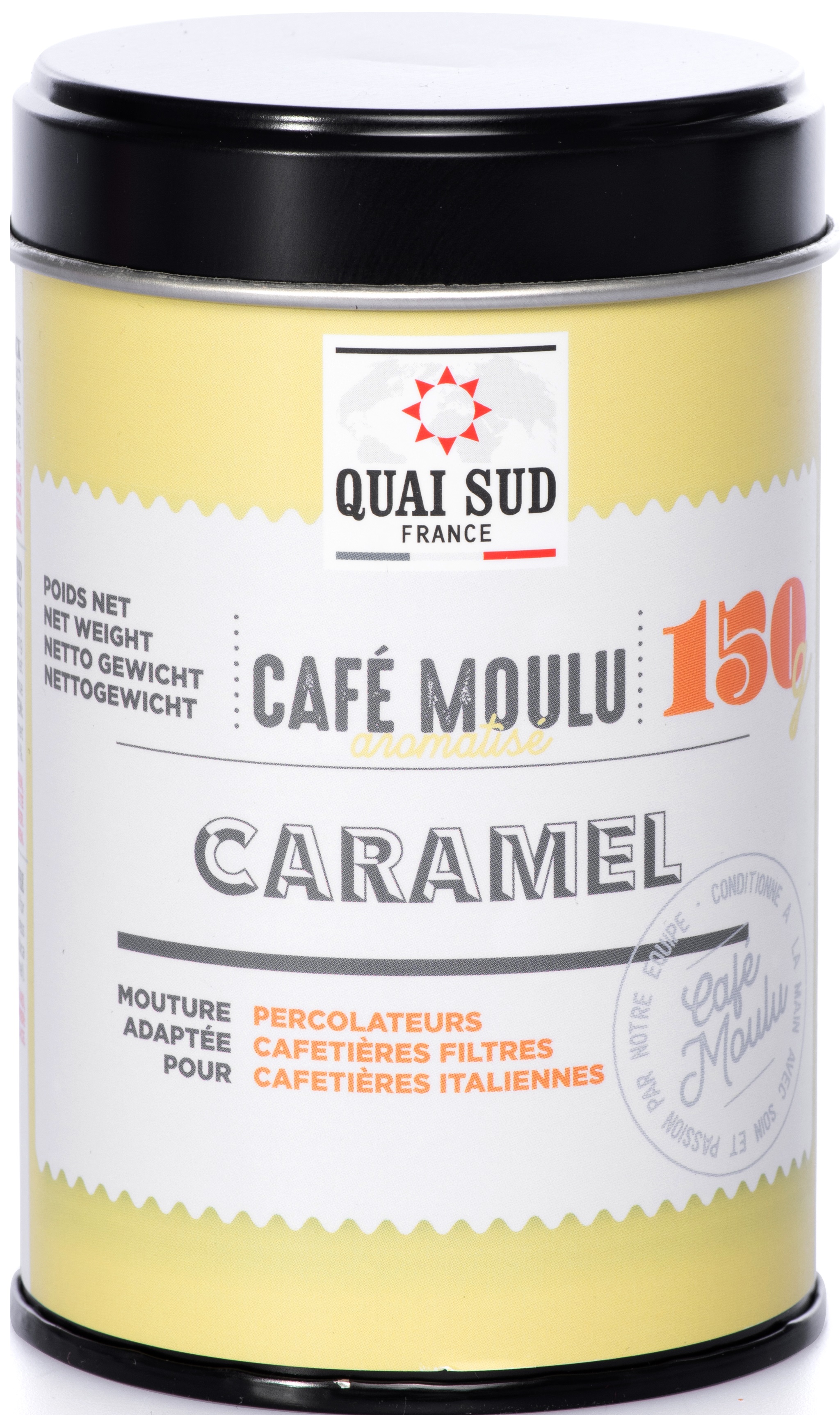 Pentru a face această cafea delicioasă cu aromă de caramel au fost combinate cele mai bune cafele cu aroma naturală a caramelului. Rezultat: o cafea 100% gourmet cu o aromă irezistibilă! Pentru a face această minune pură, globetrotterii de la Quai Sud au călătorit foarte departe și au adus înapoi în bagaje o cafea etiopienă de excepție: Moka din Sidamo. O cafea de excepție si foarte aromată, atat fructată cât și florală, ale cărei note de citrice și iasomie se vor îmbina perfect cu parfumul dulce de caramel.