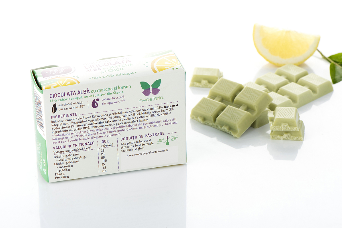 Ciocolata alba - Matcha si lemon, fara zahar (minitablete)