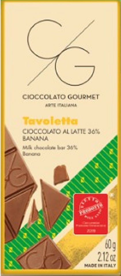 Ciocolata artizanala cu lapte si banane. Continut de cacao 36%.