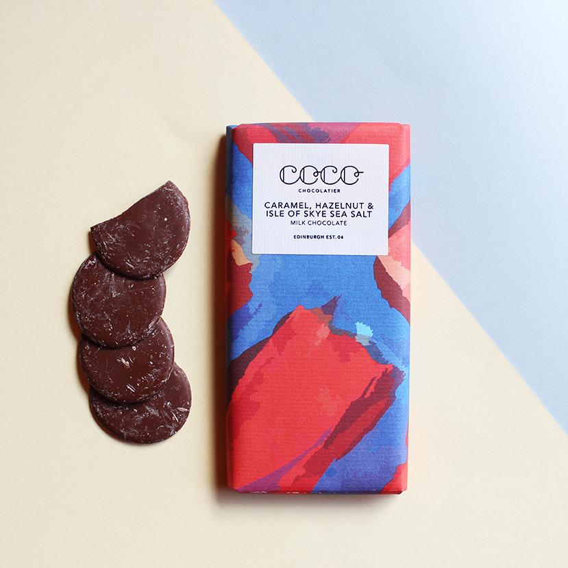 Ciocolata cu lapte, caramel, alune si sare de mare din Insula Skye