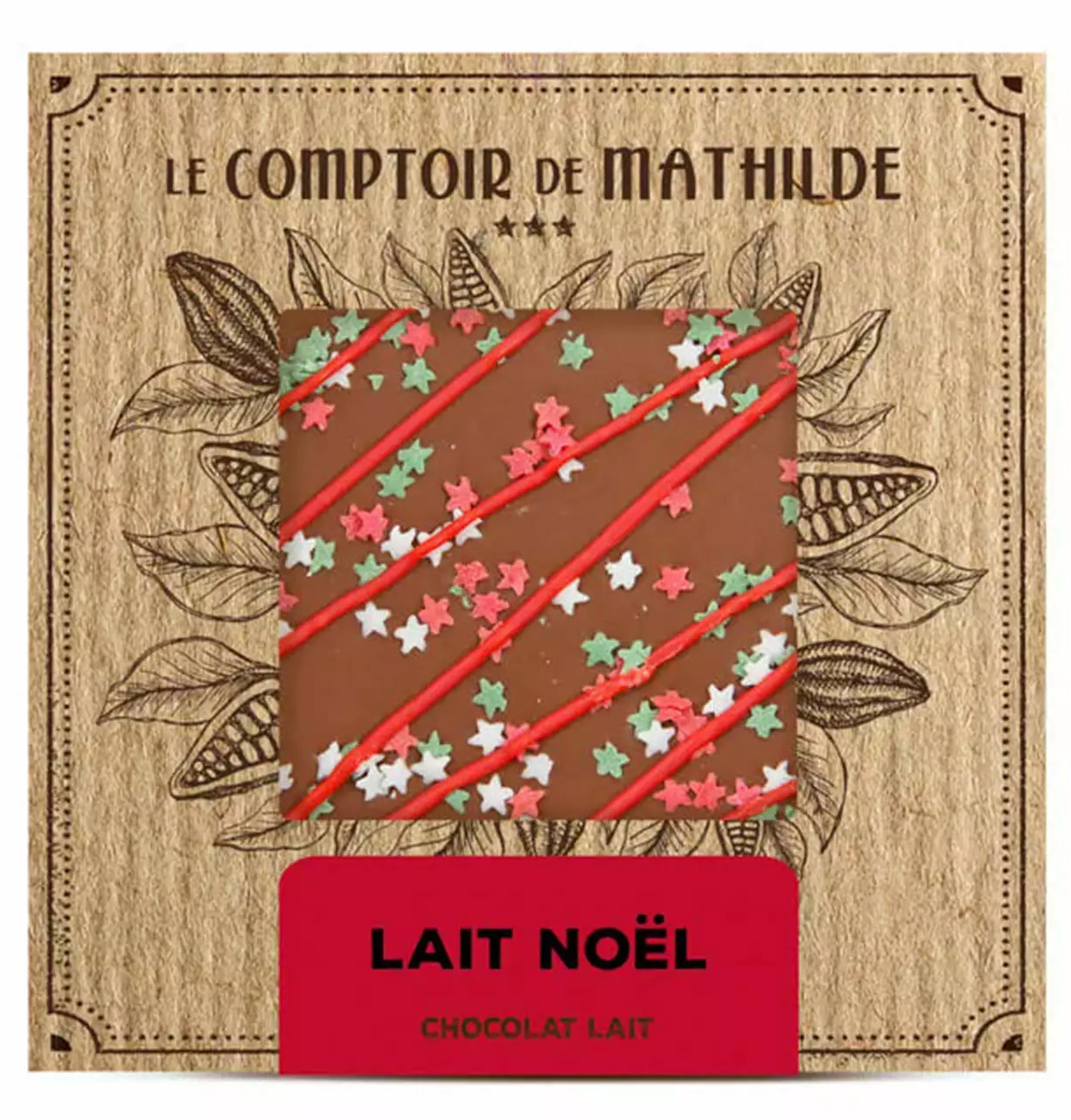 Savurați magia Crăciunului cu acest baton festiv de ciocolată cu lapte de la Le Comptoir de Mathilde. Un deliciu dulce decorat cu stele colorate și fire de ciocolată roșie pentru o plăcere gourmet. Ideala pentru cadou sau pentru a te rasfata in perioada sarbatorilor!