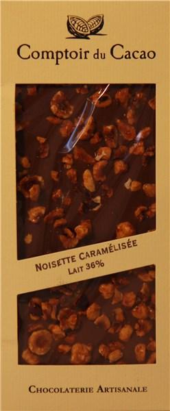 ciocolata cu lapte (masa de cacao, 36% lapte), zahar, lapte praf integral 30% lapte solid, unt de cacao pur, lecitina de soia, aroma naturala de vanilie, sare, alune de padure caramelizate
